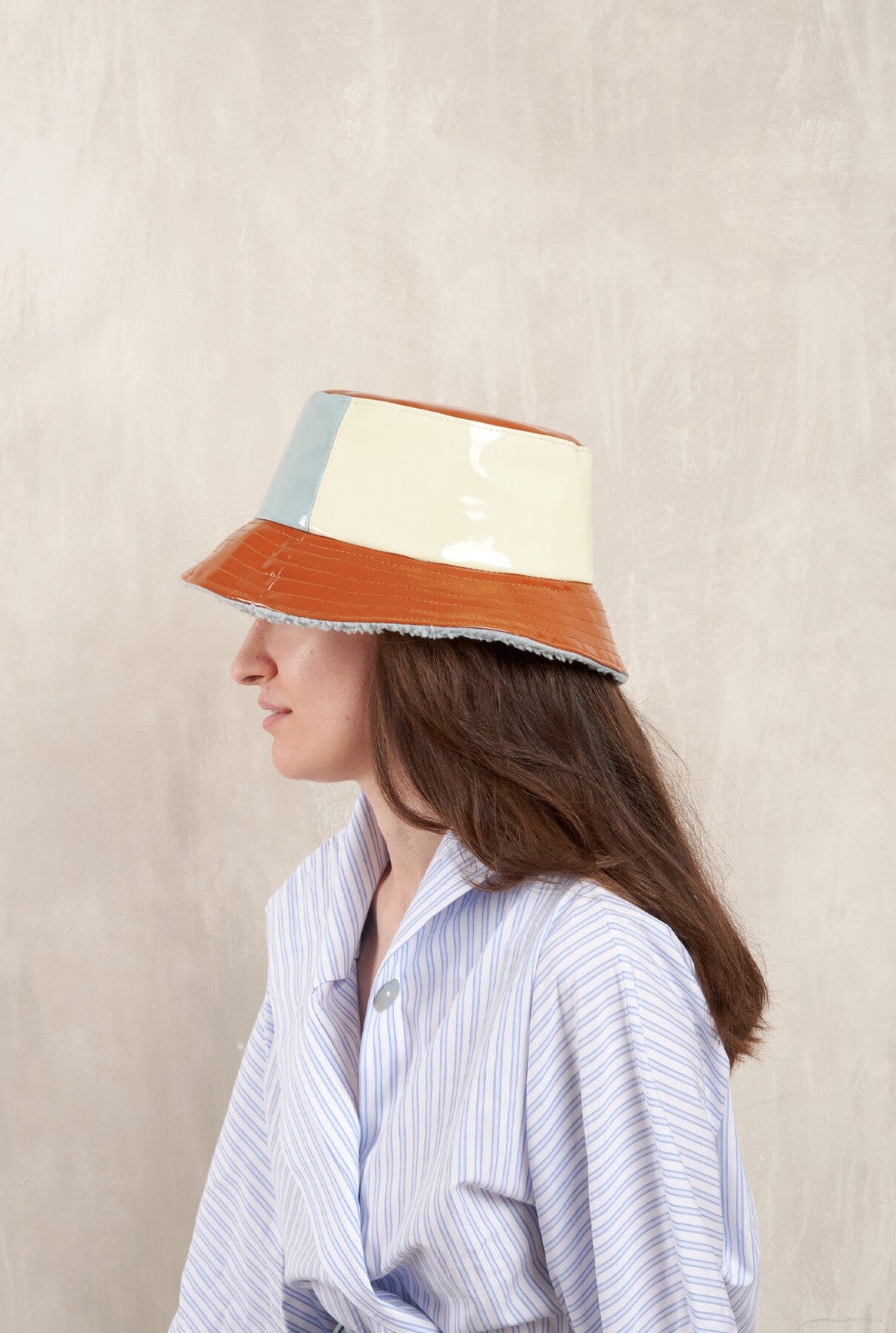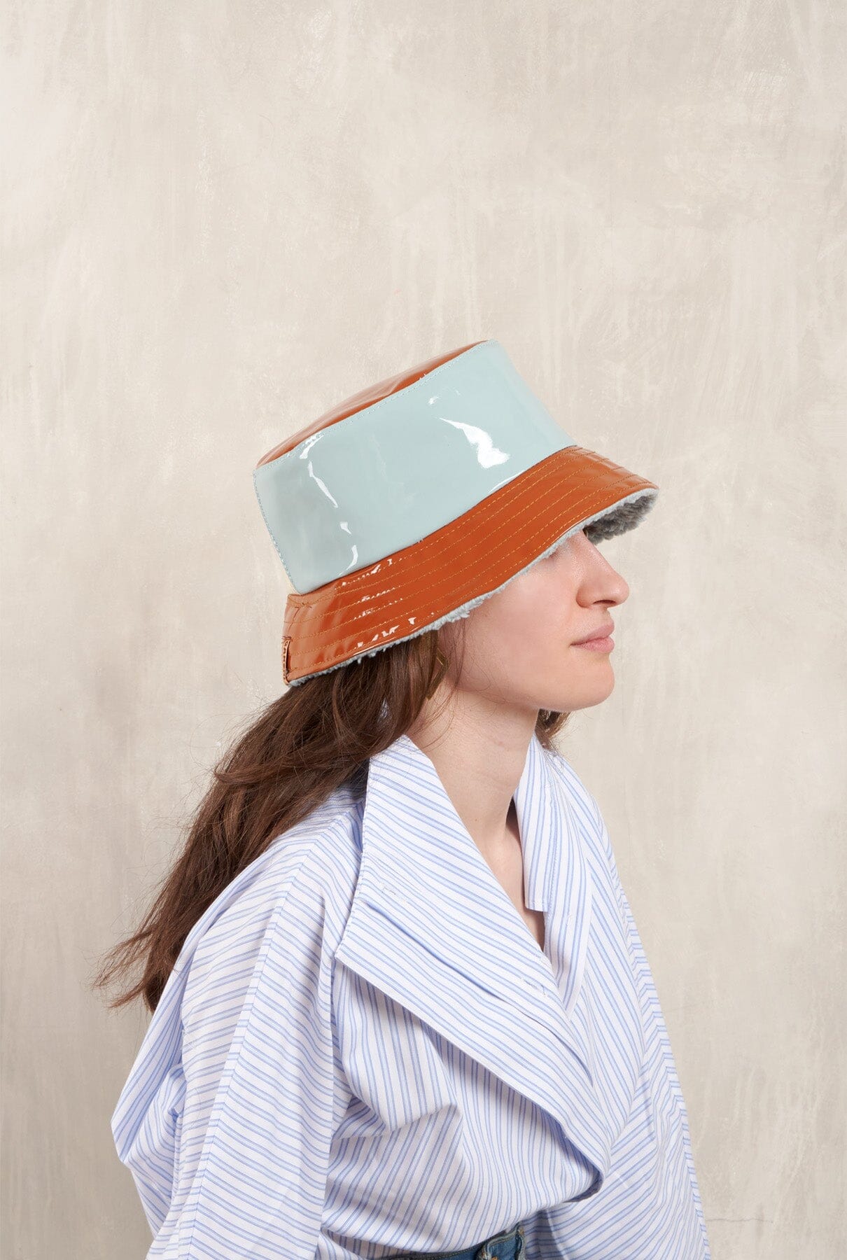 Sombrero Charolito en color miel, hielo y celeste. Ideal para días lluviosos y fríos. Quedará fabuloso con cualquier look invernal.