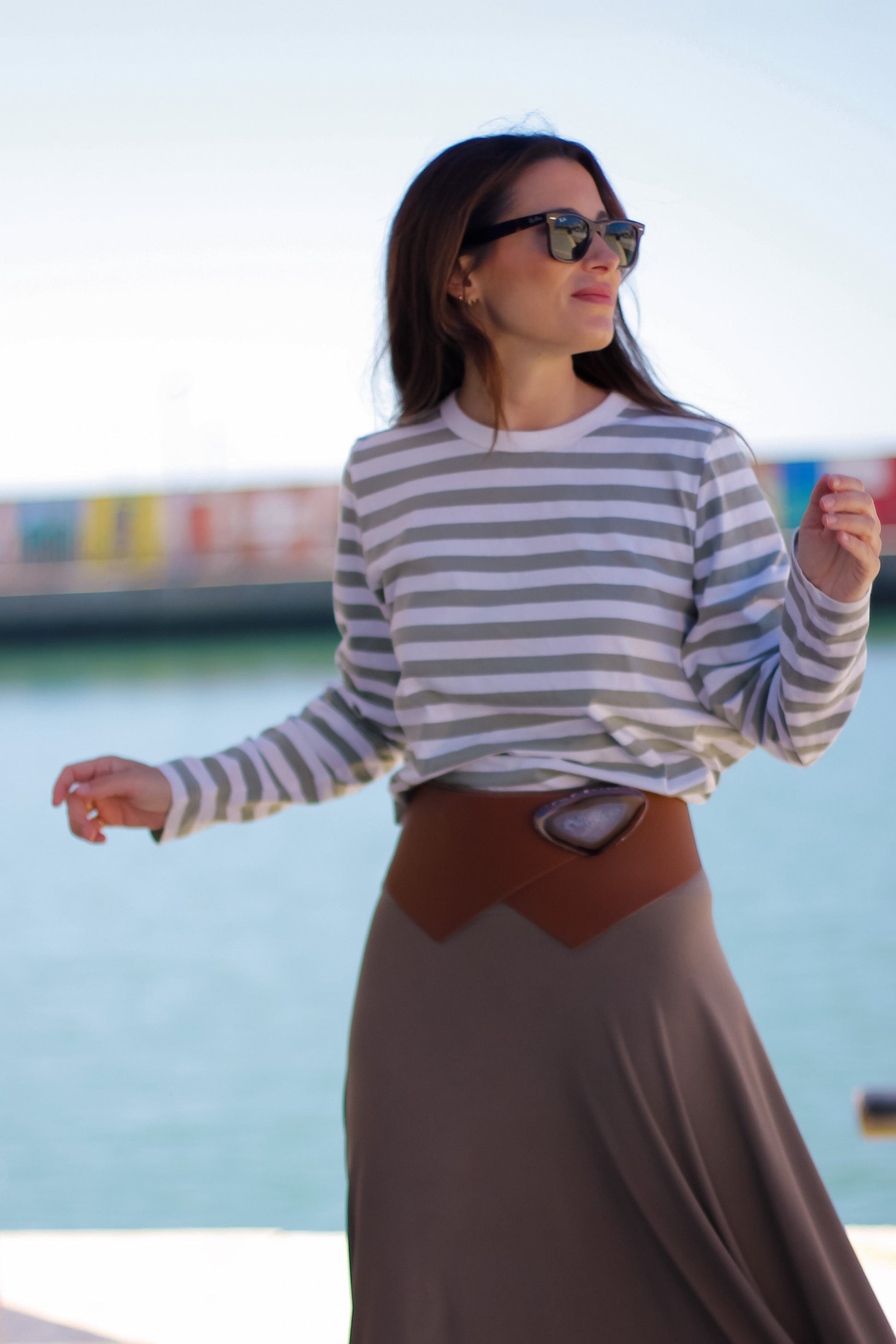 Cinturón diseñado por María Valdés y Alejandro Gª Cortés, el diseño surge de una idea de María, amante de los complementos, este cinturón es muy versátil y lo lleva con faldas, vestidos y pantalones.