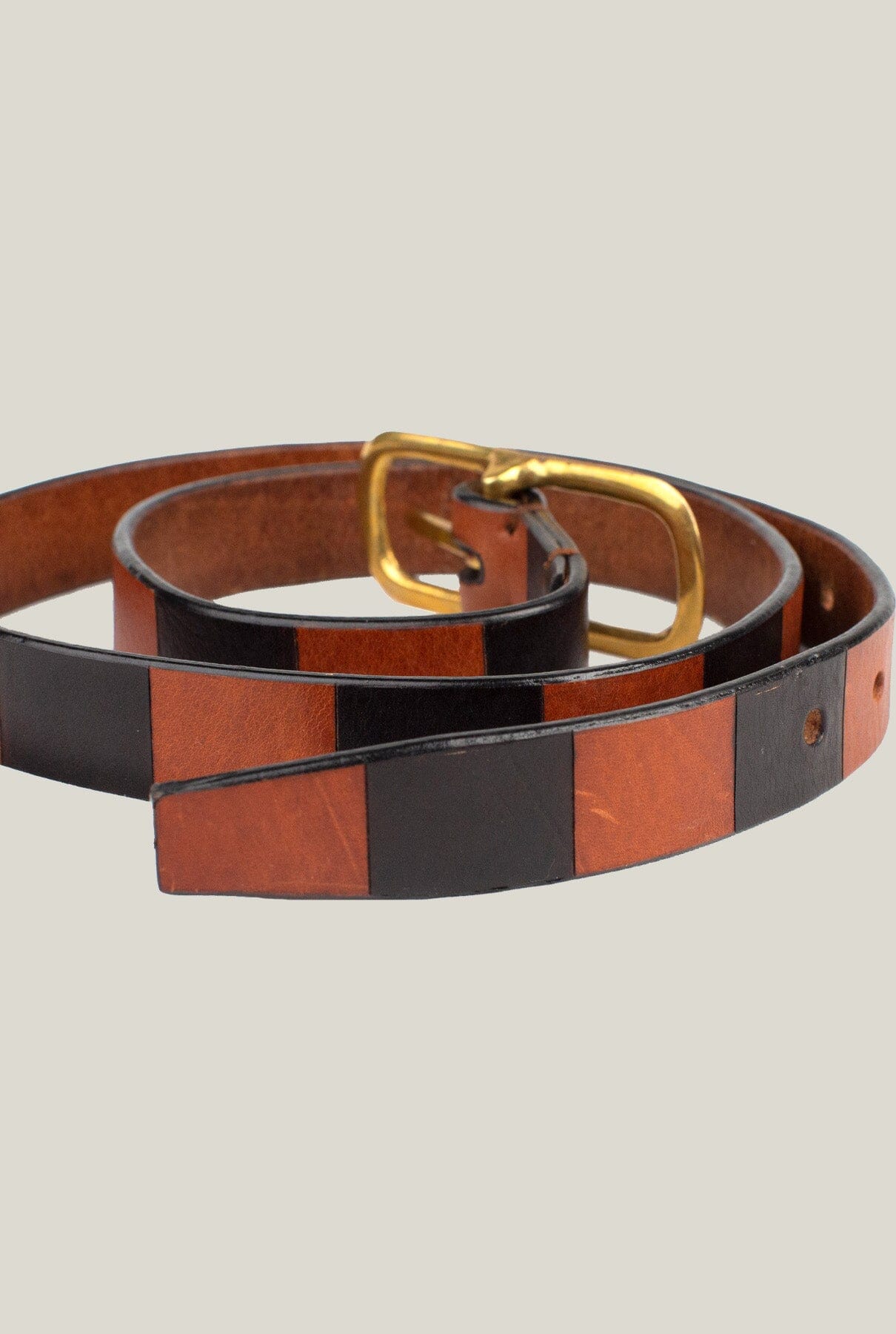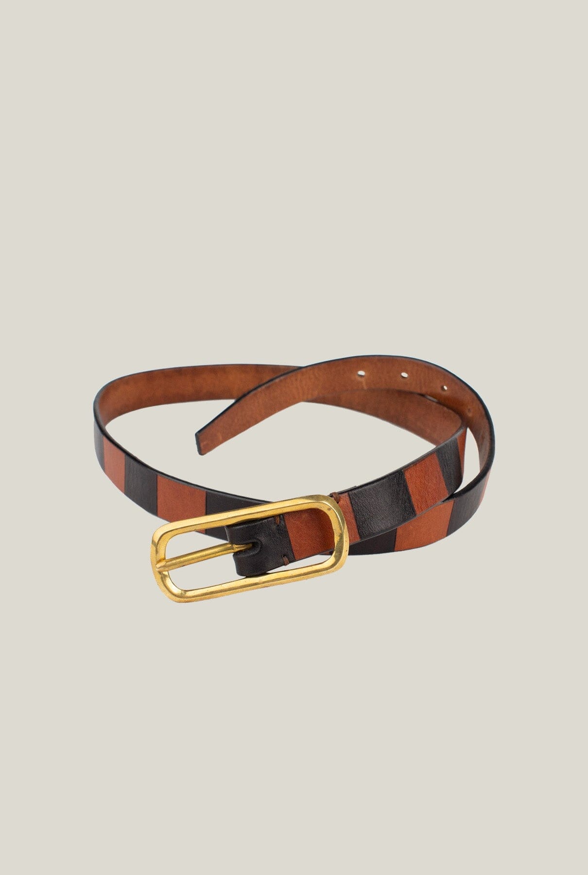 Los diseños de la colección de cinturones con hebillas antiguas, recuperan hebillas de arnés originales del siglo XIX, que se montan a mano sobre correas de piel de vacuno con dibujos pintados a mano inspirados en los frentes de los arneses.