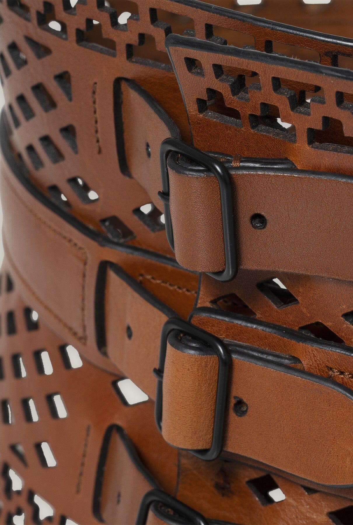 Su diseño estructurado se basa en una pieza de talabartería, de la que también toma su nombre, que se asienta sobre el lomo del caballo y sirve de soporte a la cincha. Perforada con nuestro característico patrón de suelo de carruaje.
