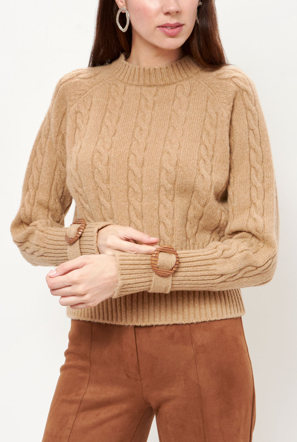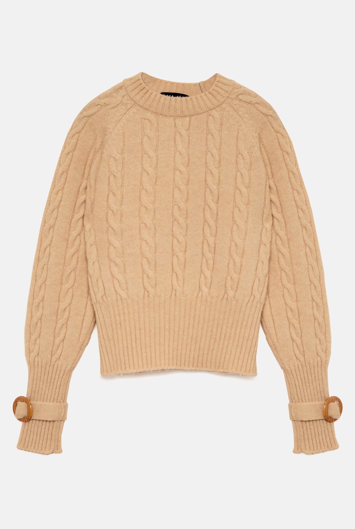 Un clásico jersey de cuello redondo con un toque chic. Este jersey presenta dos cinturones vintage en los puños que le dan un toque nostálgico. Se trata de un tejido de punto de peso medio diseñado para un ajuste relajado y mangas ligeramente largas. Tejido en España con una mezcla de lana italiana de primera calidad (Zegna Baruffa) de tacto suave, este jersey de punto por cable es una prenda atemporal que no puede faltar en tu armario de invierno. Diseñado por Laia Alen