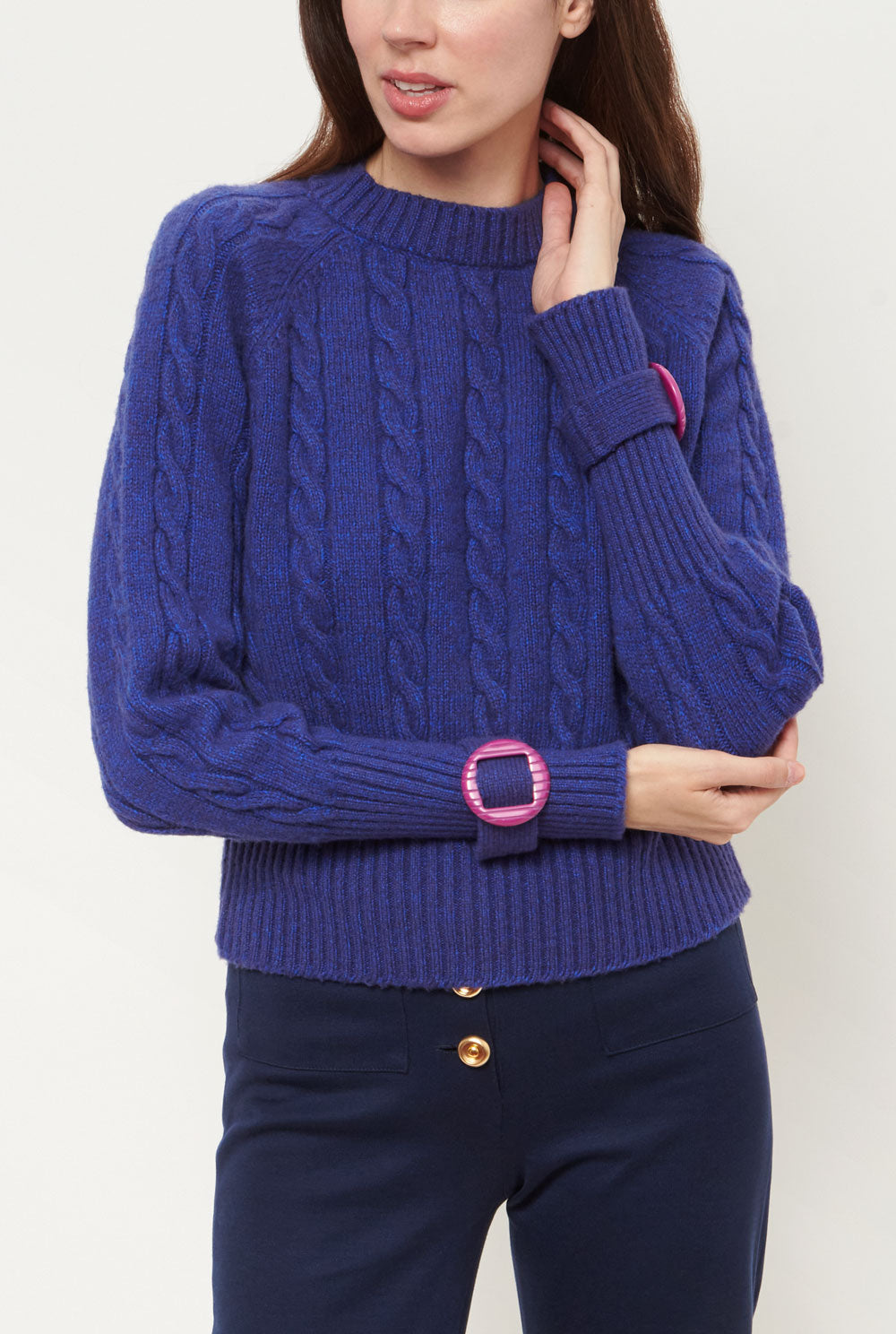 Un clásico jersey de cuello redondo con un toque chic. Este jersey presenta dos cinturones vintage en los puños que le dan un toque nostálgico. Se trata de un tejido de punto de peso medio diseñado para un ajuste relajado y mangas ligeramente largas. Tejido en España con una mezcla de lana italiana de primera calidad (Zegna Baruffa) de tacto suave, este jersey de punto por cable es una prenda atemporal que no puede faltar en tu armario de invierno. Diseñado por Laia Alen