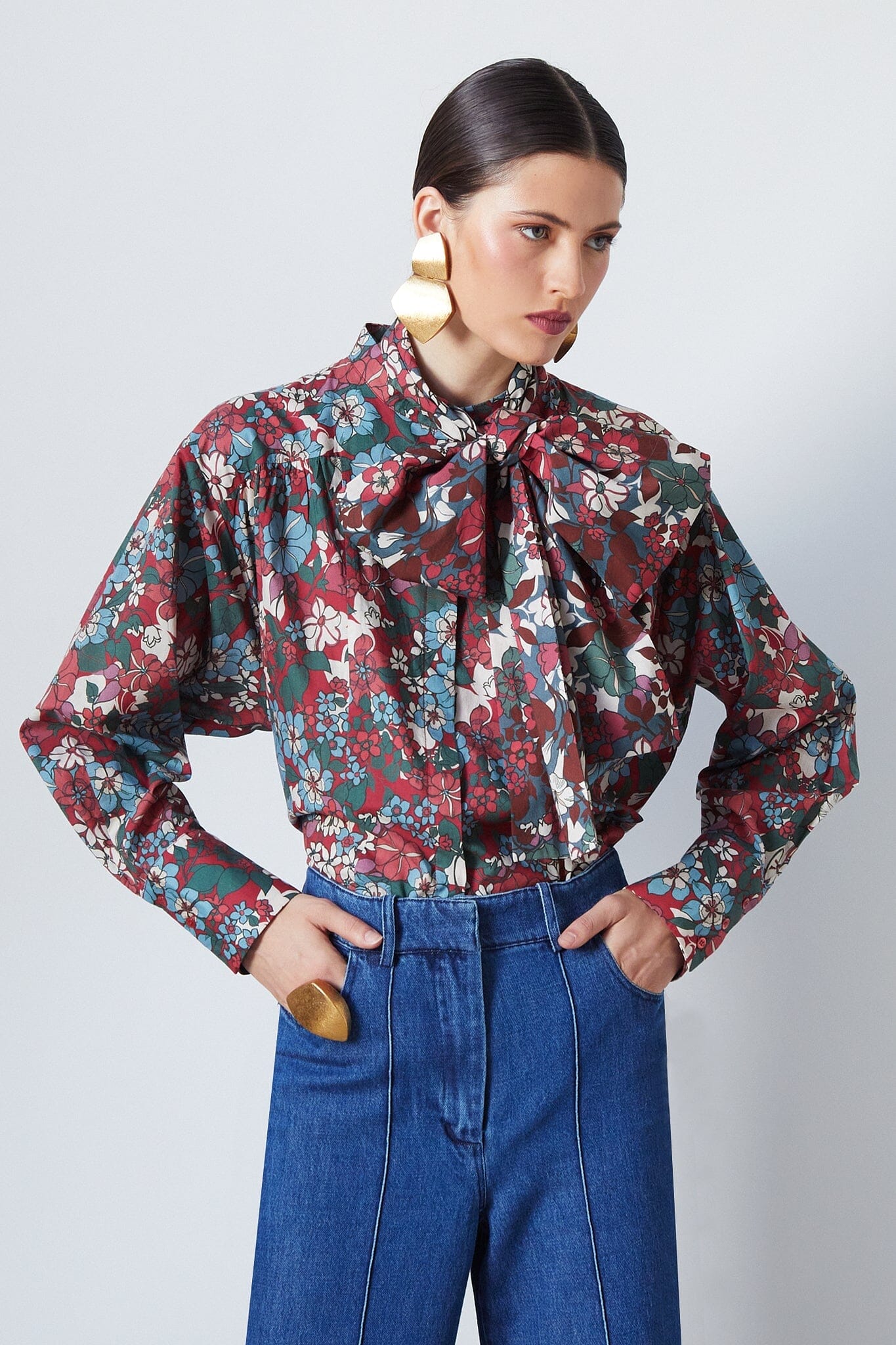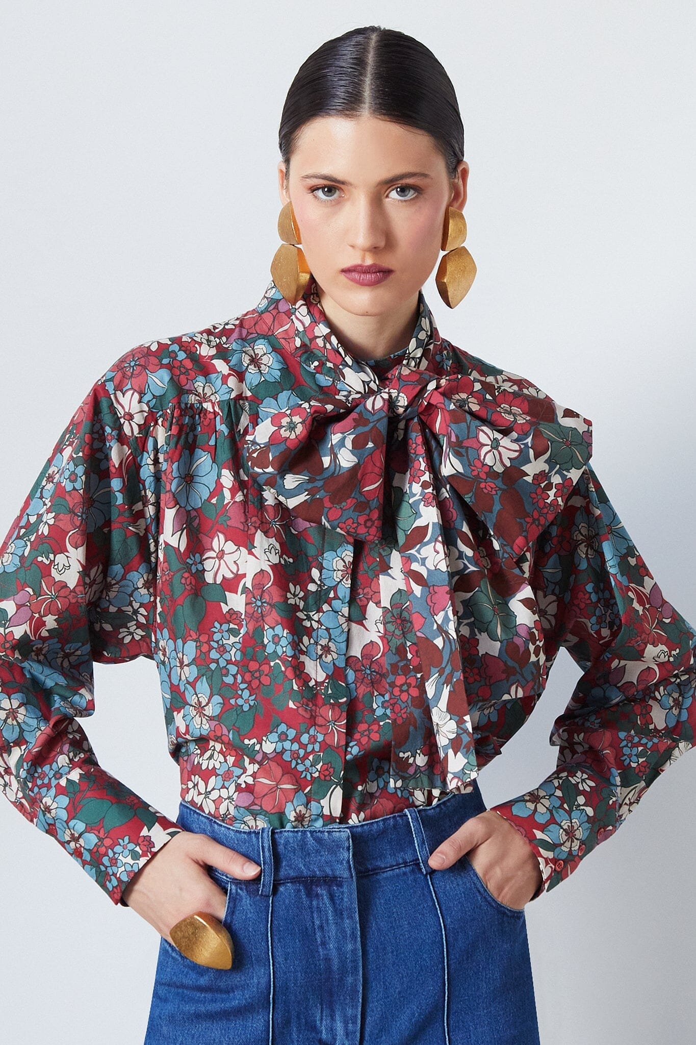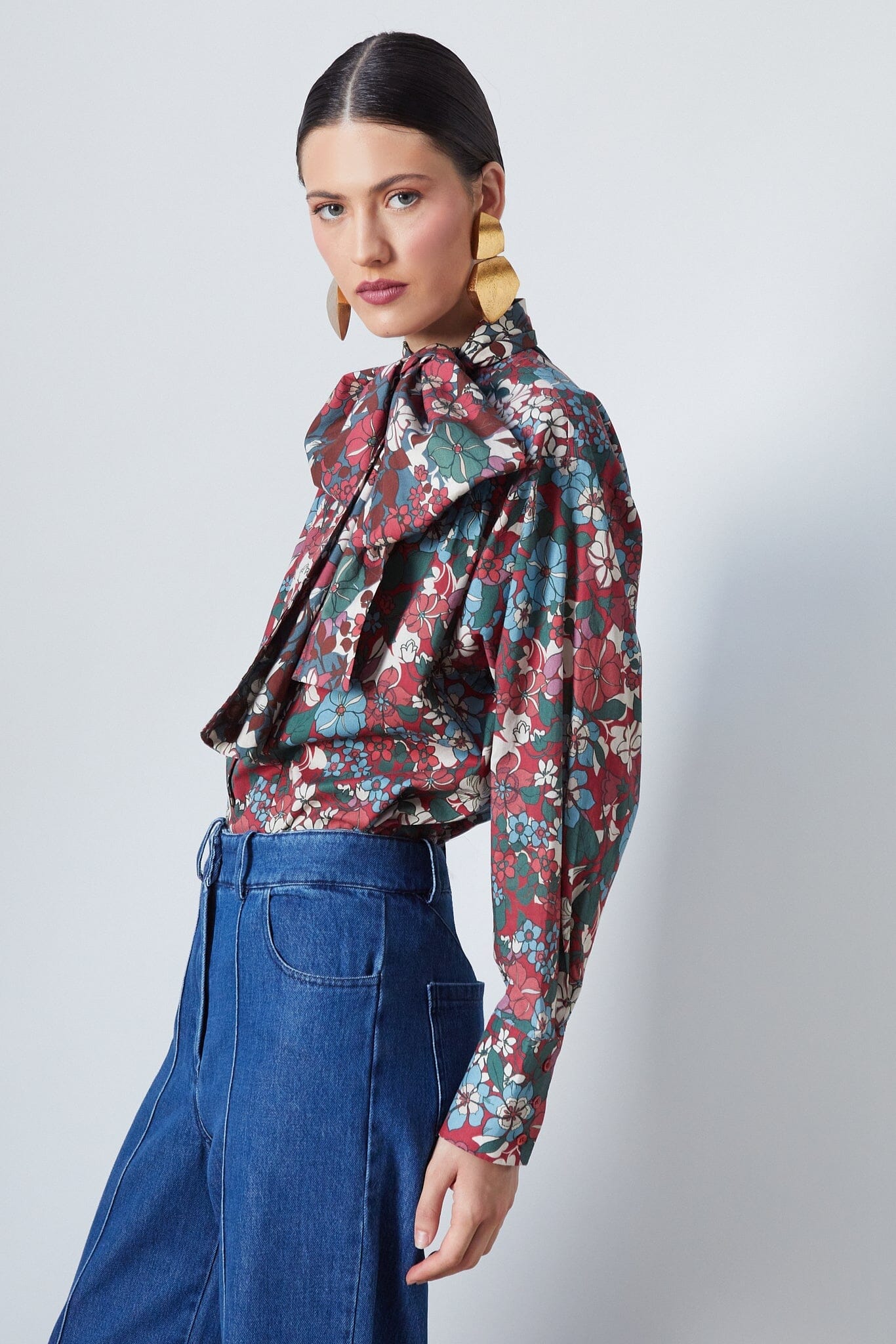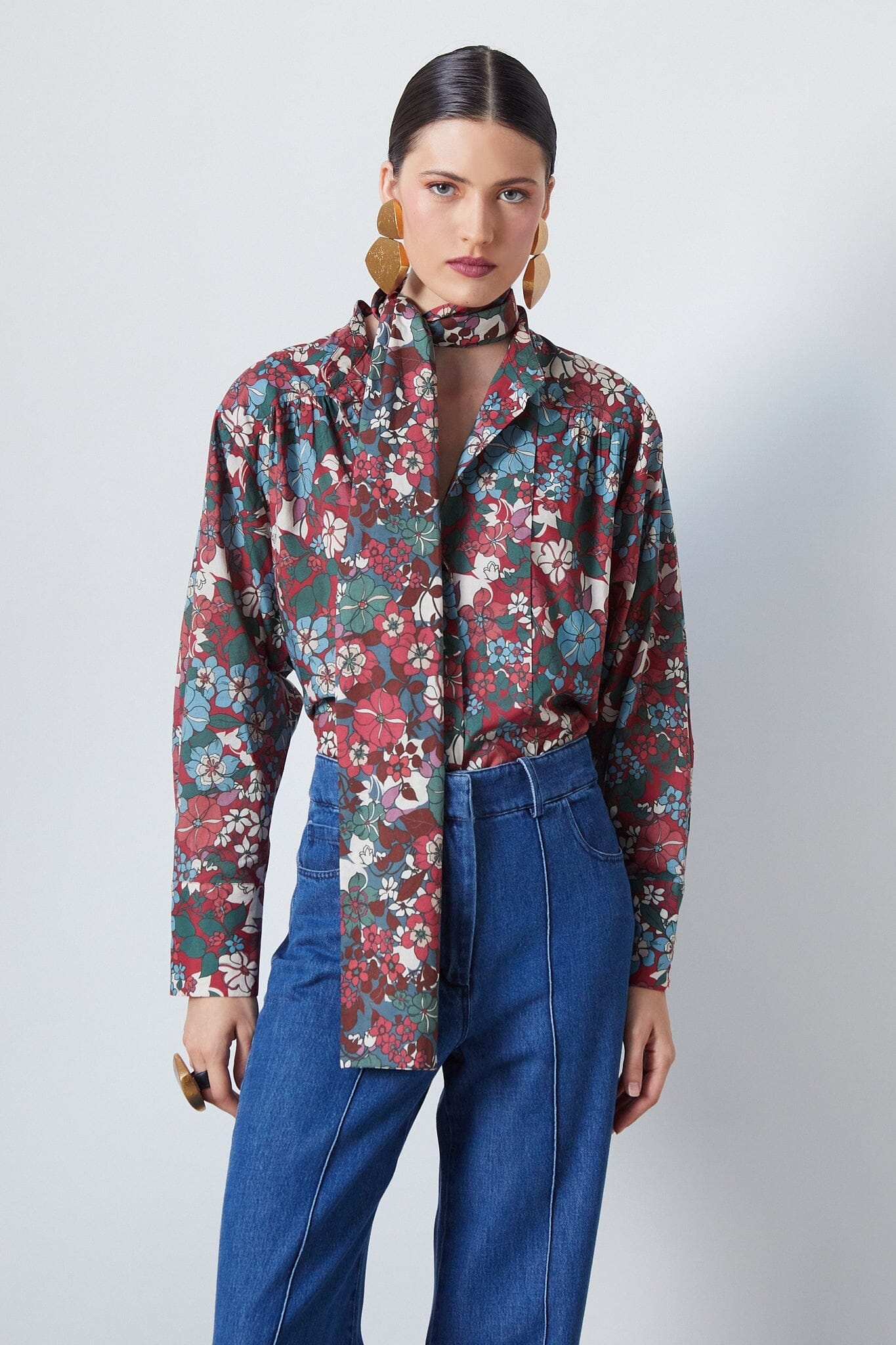Esta camisa floreciente de manga larga en color granate presenta puños anchos y un detalle de encaje que permite infinitas posibilidades de estilo. La prenda versátil perfecta para realzar tus looks.