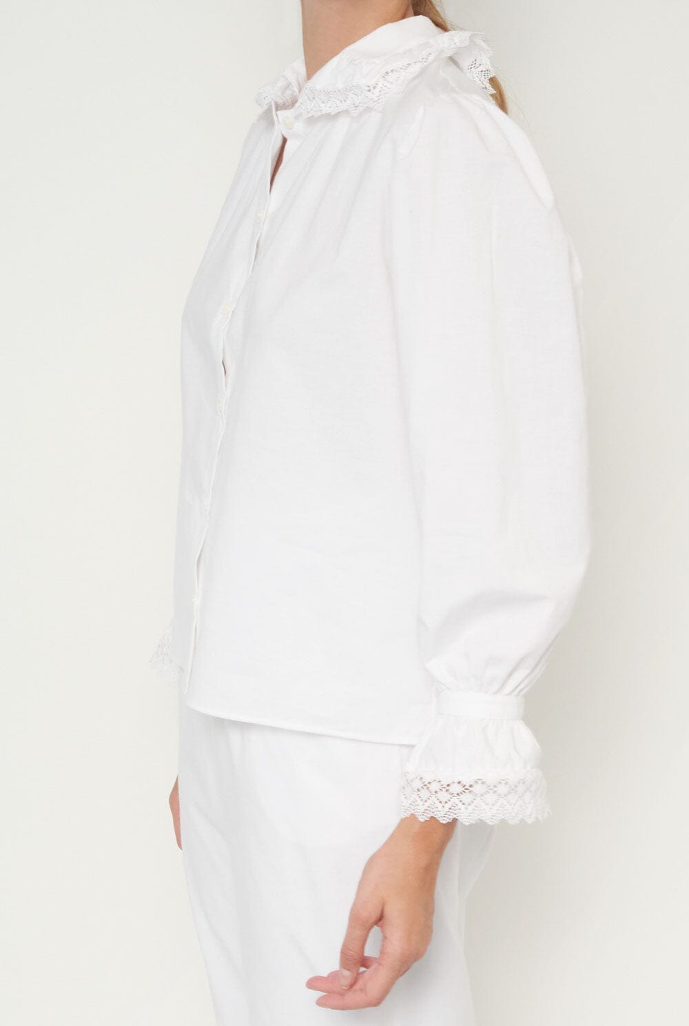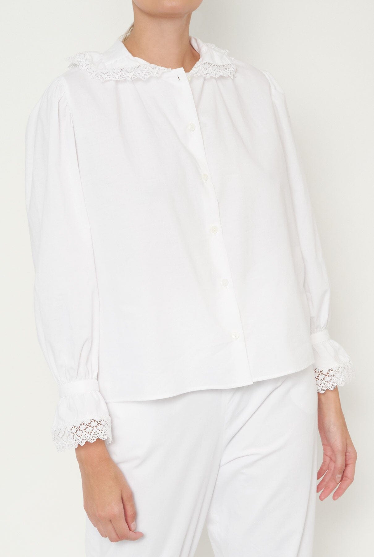 Vestido largo de algodón blanco con detalle de bordado en el pecho. Diseñado por Kolonaki