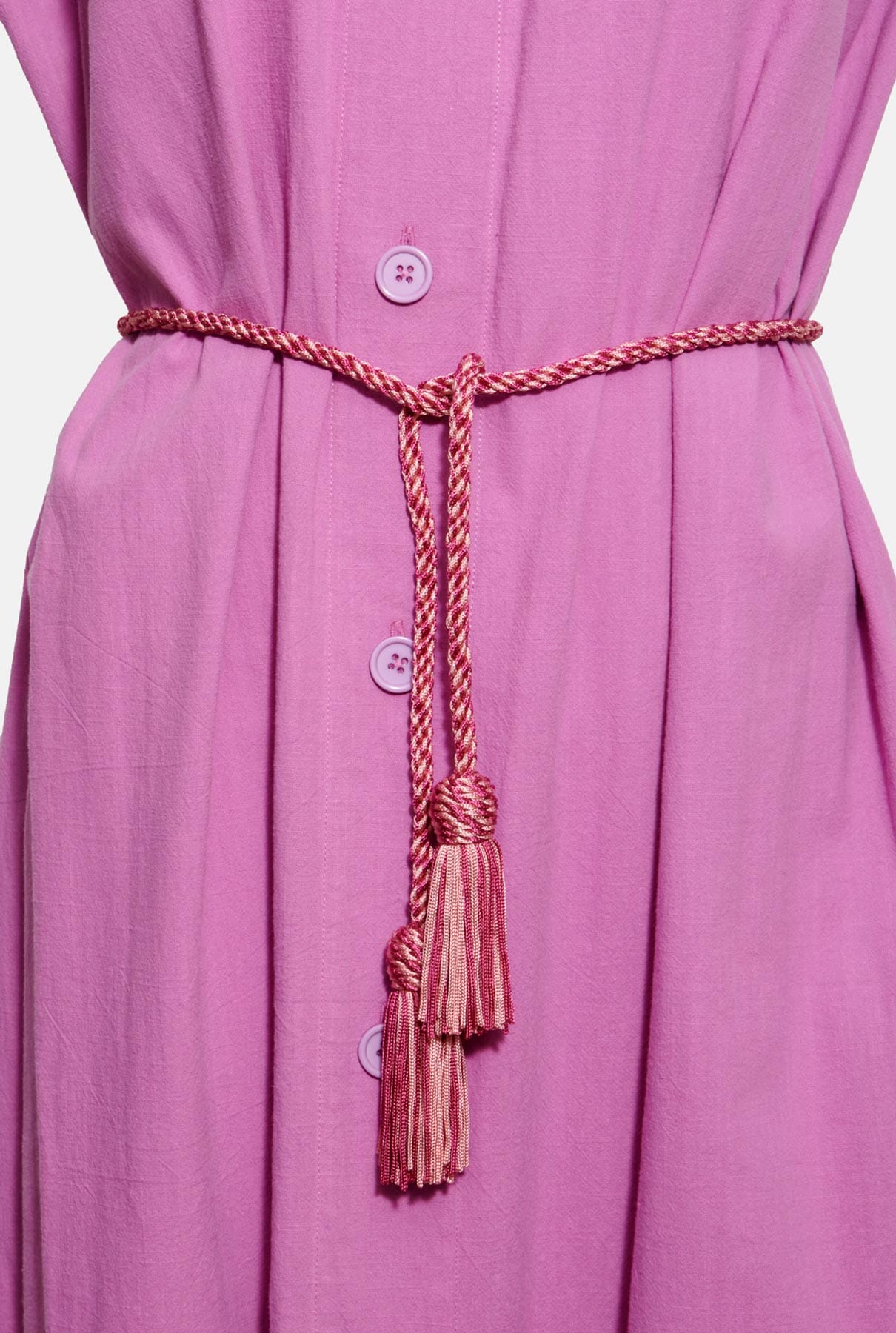 Cordón de seda trenzado a mano con borlas en ambos extremos. Accesorio versátil que puede usarse como collar o cinturón.