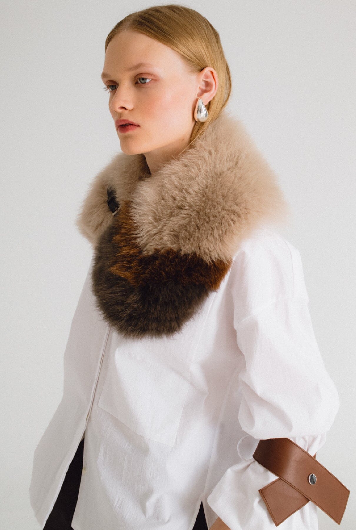 Cuello de pelo en tonos piedra, marrón camel y gris, con original cierre ajustable de piel negra. Infinitas formas de llevarlo y posiciones, suelto o cerrado, sobre una prenda exterior o una camisa para dar un toque más sofisticado y completar todos tus looks.
