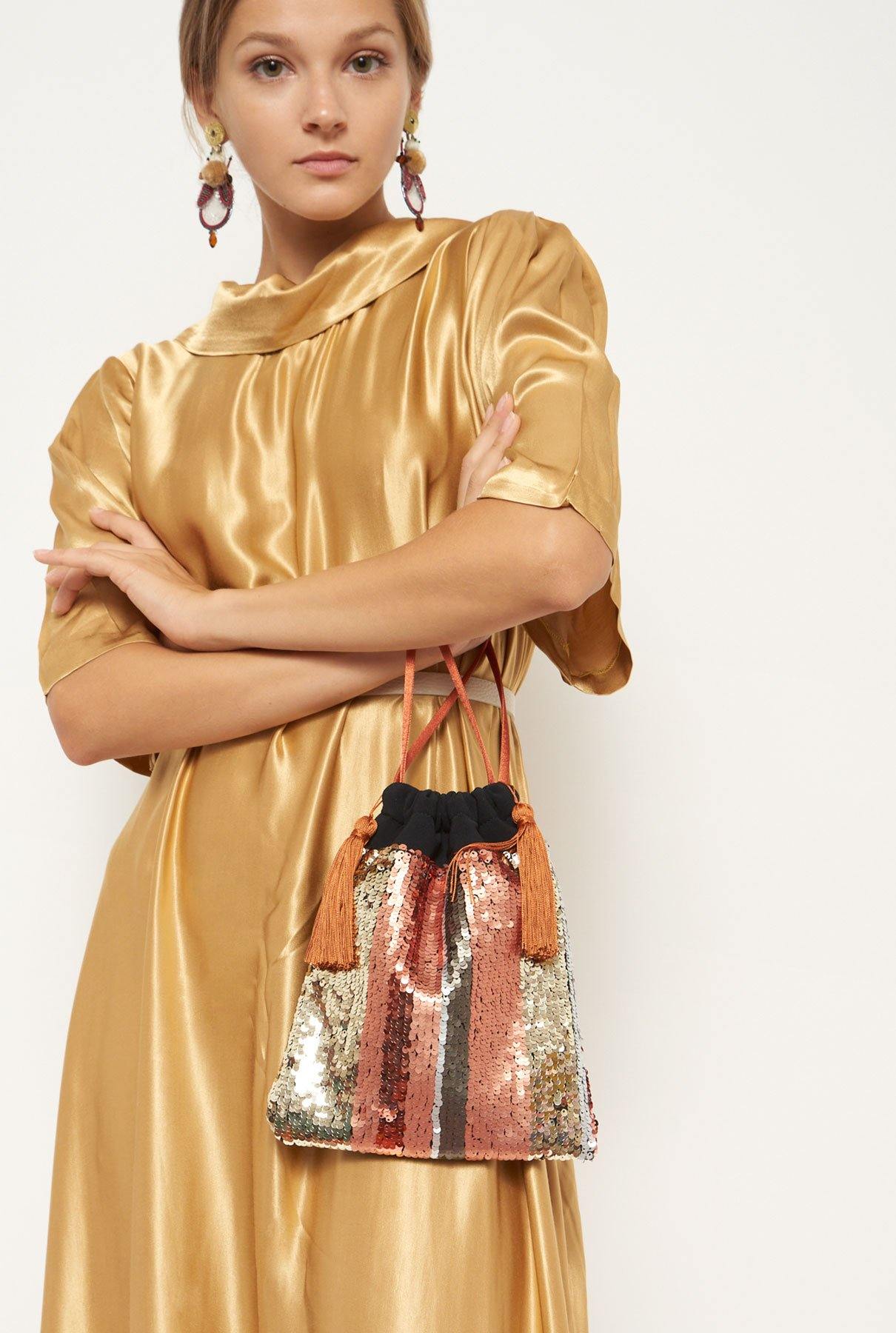 Los bolsitos añadirán el toque de glamour nostálgico de los años 20 tanto a tus looks de diario como de fiesta. Fabricados con orgullo en España, los bolsos Laia Alen tienen un tacto suave y una forma natural con cierre de cordón para un cierre fácil. Diseñado por Laia Alen.