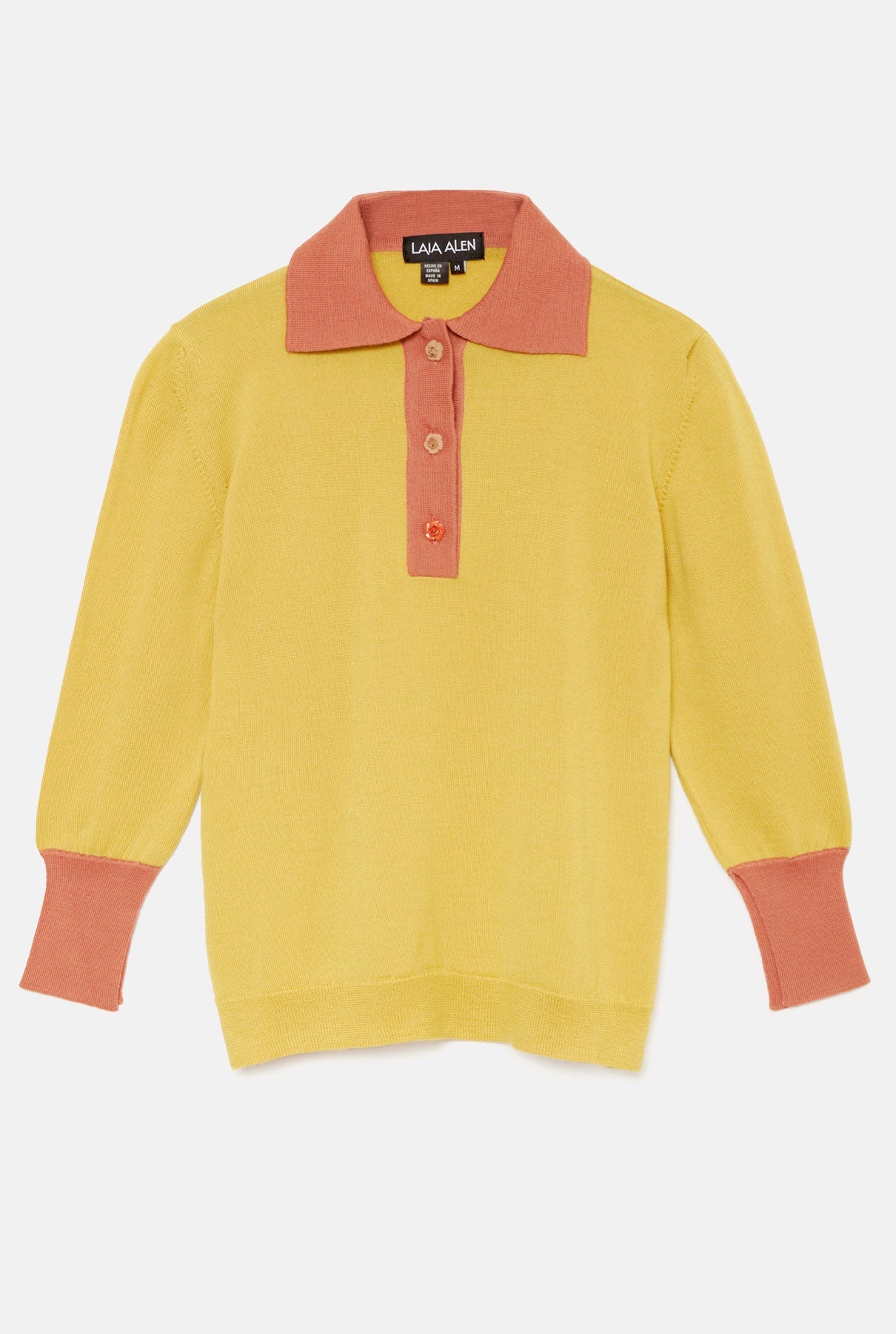 Este jersey está confeccionado en una mezcla de lana de alta calidad y cachemira que le confiere un tacto muy suave. Está confeccionado en España con cuello en contraste y botones adornados con flores que refuerzan el gusto de la marca por los detalles. Las mangas tienen un largo de ¾. Diseñado por Laia Alen
