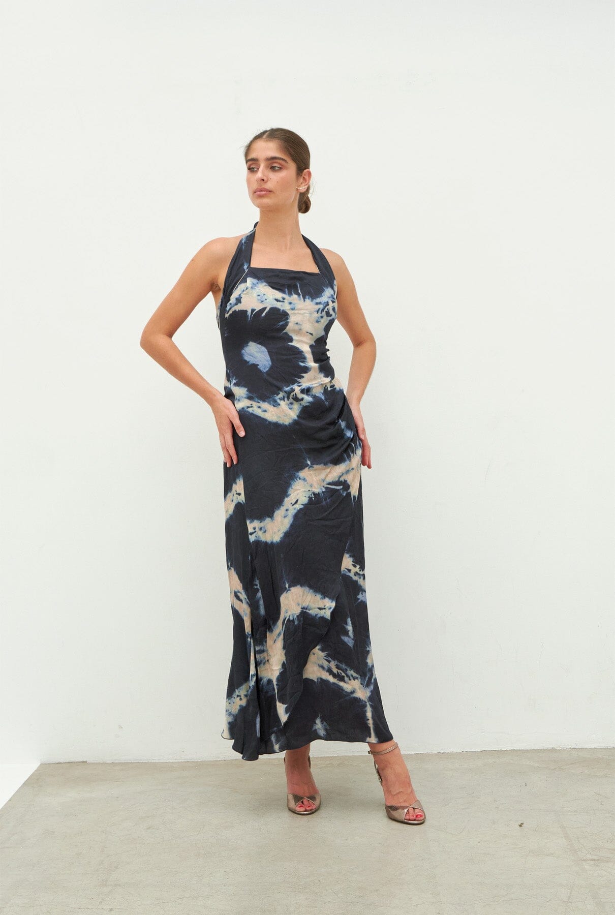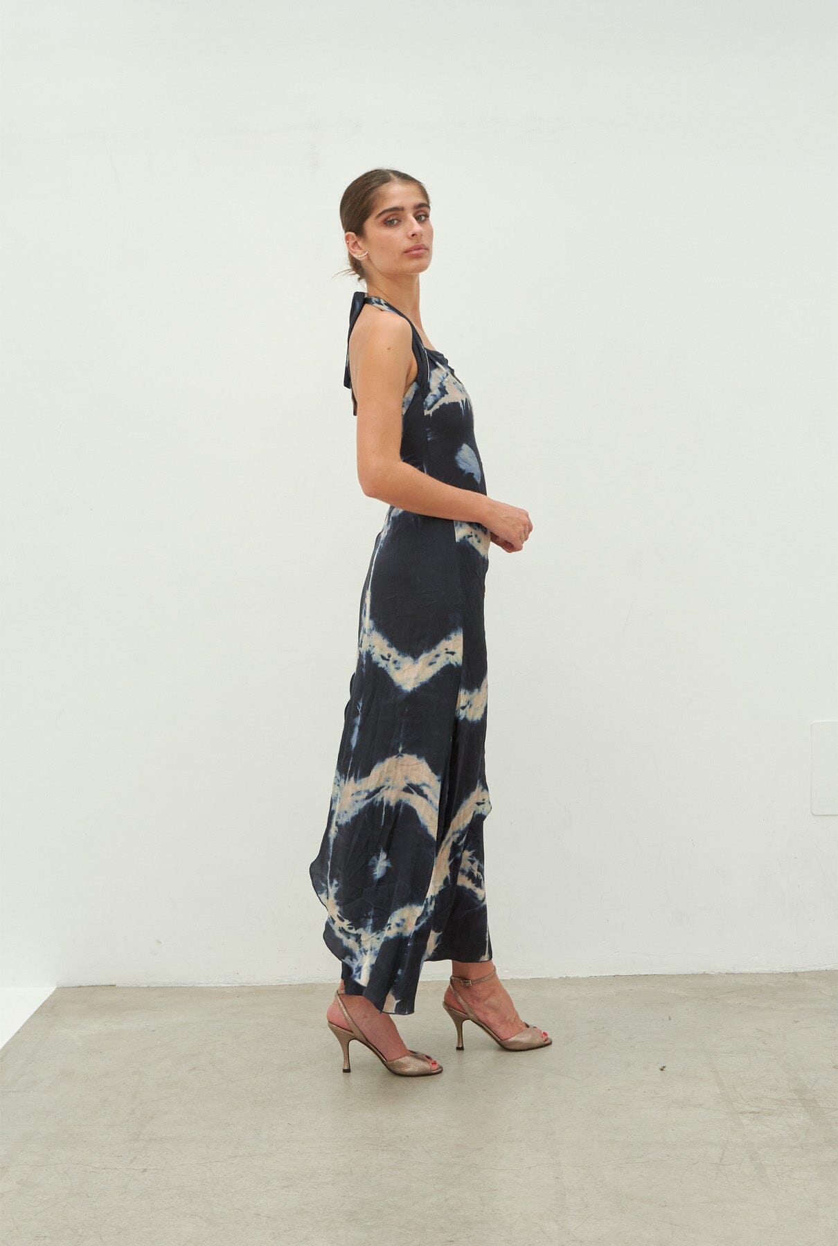 Su estampado único lo hace apto para usar tanto de día como de noche. El escote le aporta un toque de elegancia. Y el tejido confeccionado en 100% viscosa con un estampado tie dye inspirado en el océano lo hace totalmente original y distintivo.