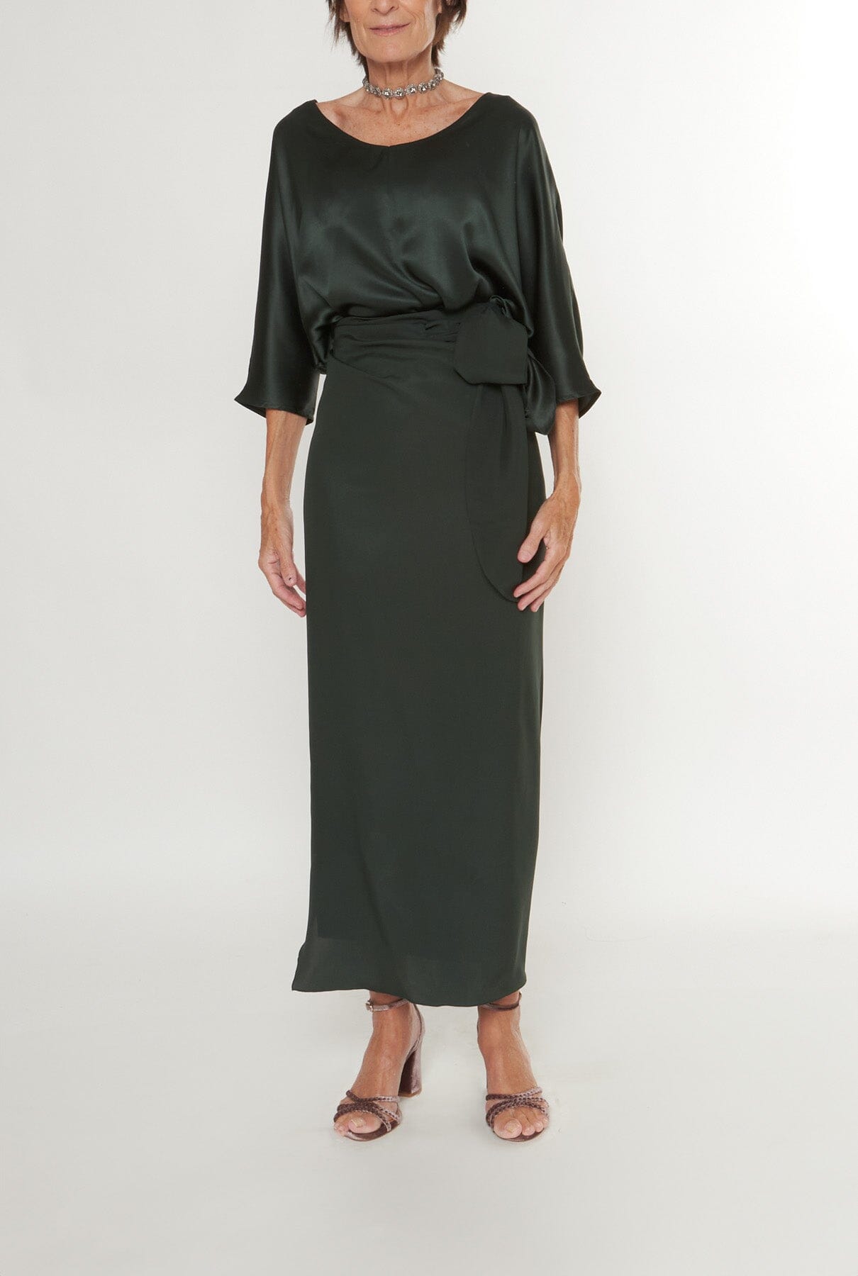 Falda pareo. 100% seda satinada. La falda está confeccionada con el lado brillante en el interior.