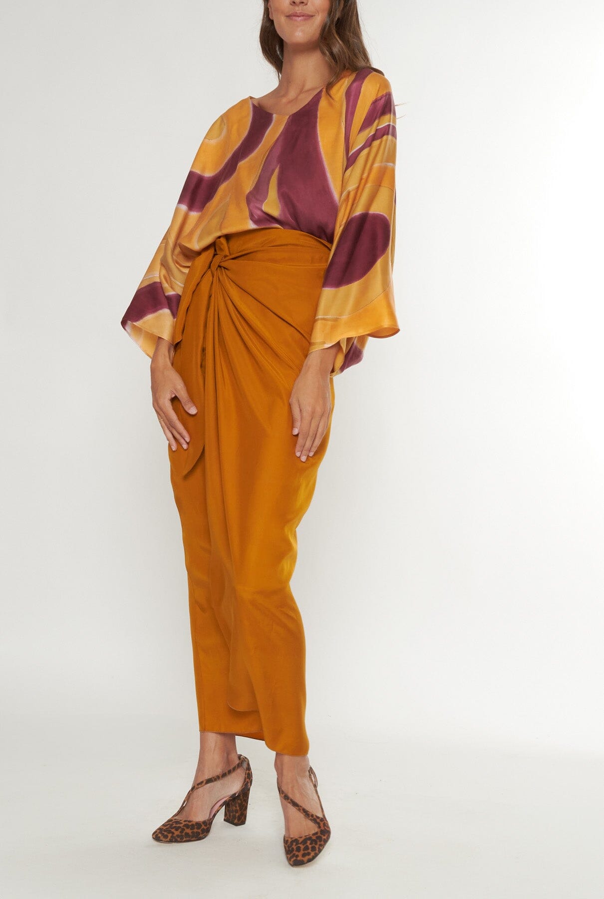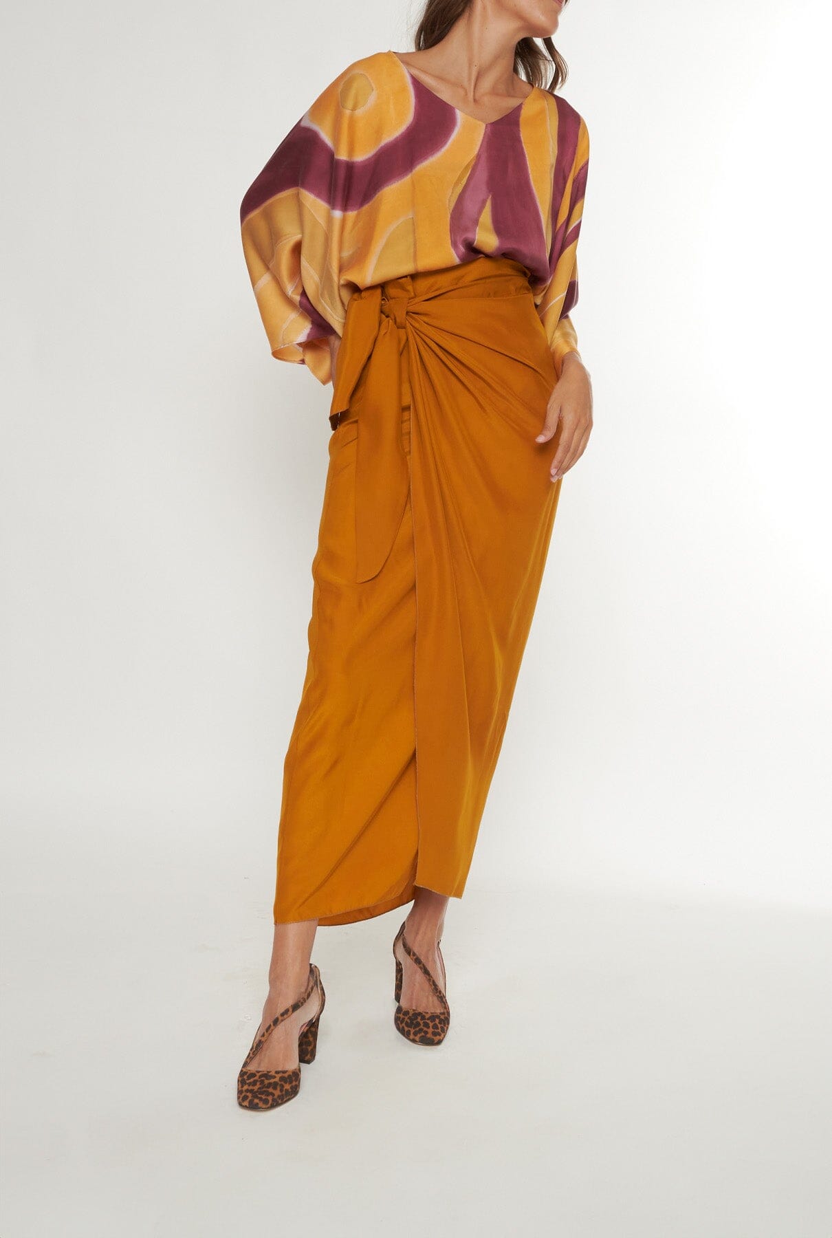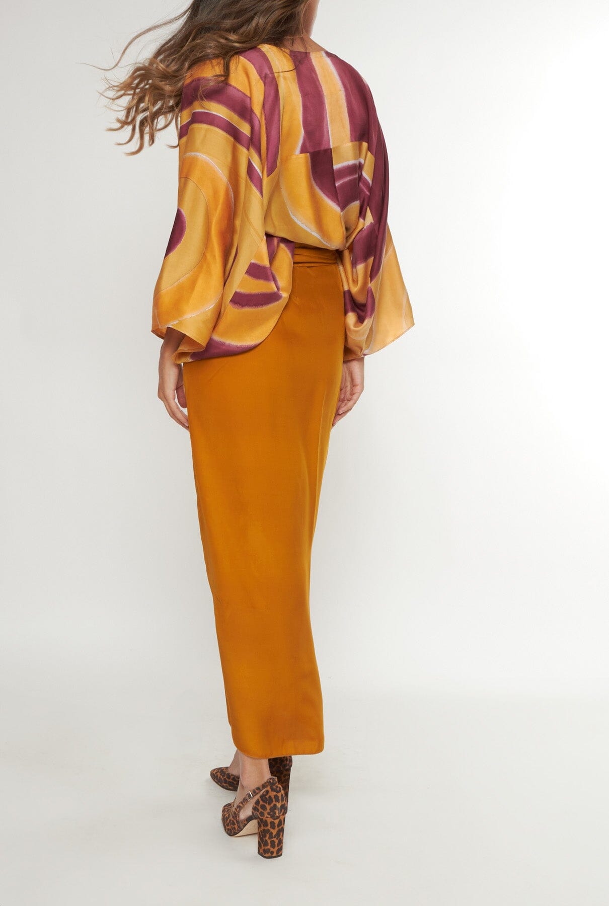 Falda pareo; 100% seda satinada. la falda está confeccionada con el lado brillante en el interior.