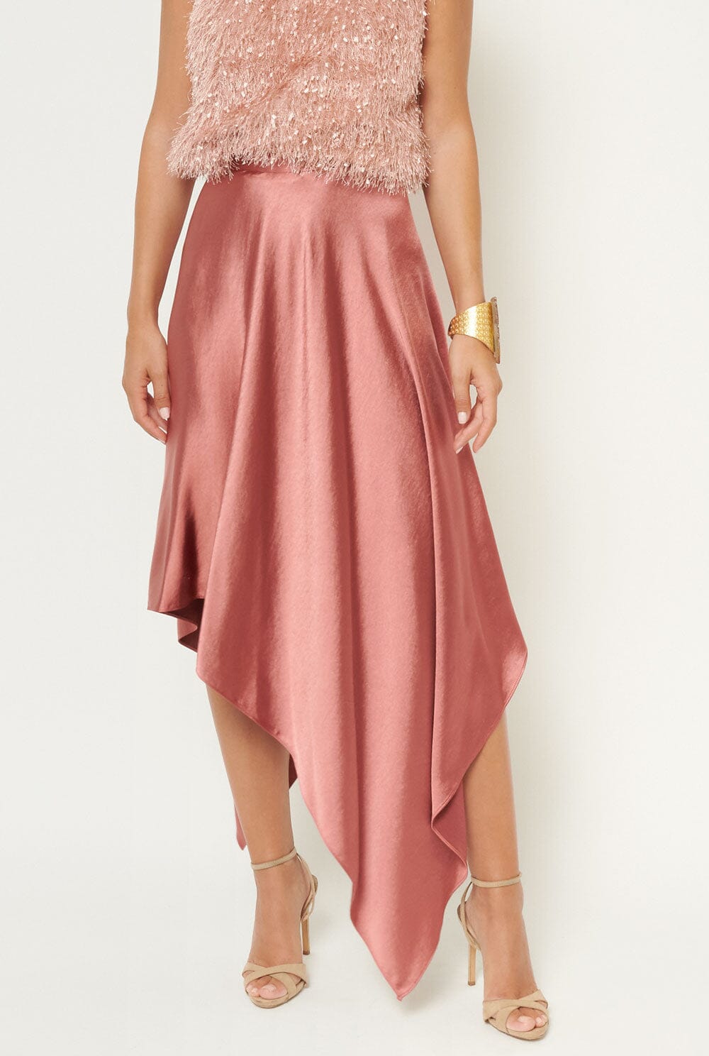 Falda capa asimétrica satén vintage