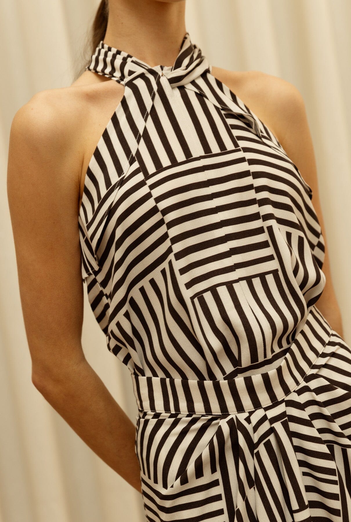 Falda midi drapeada en el centro de la parte delantera donde se cruza dejando una abertura que deja entrever las piernas. Está cortado al bies, lo que favorece el ajuste y la adaptación al cuerpo. Se cierra con cremallera en el centro de la espalda.