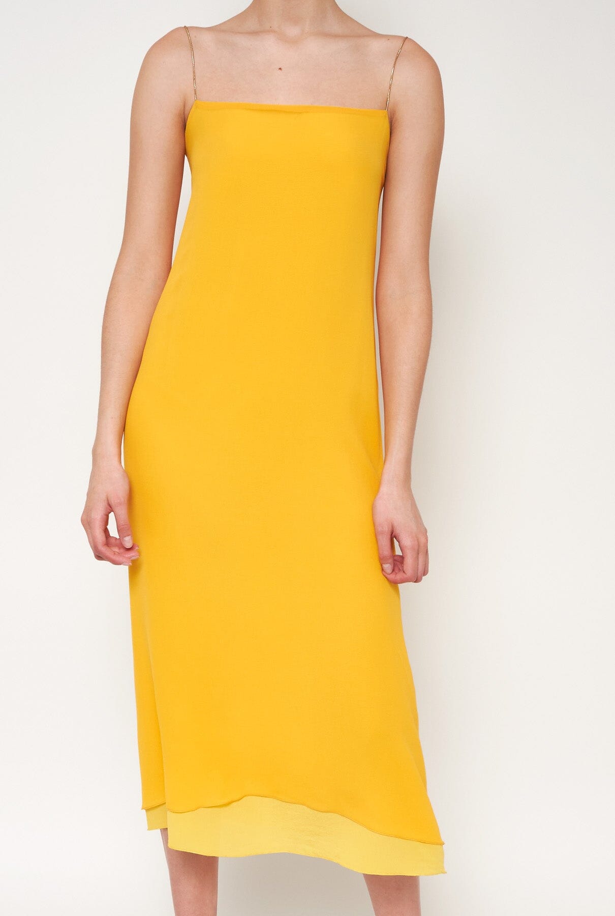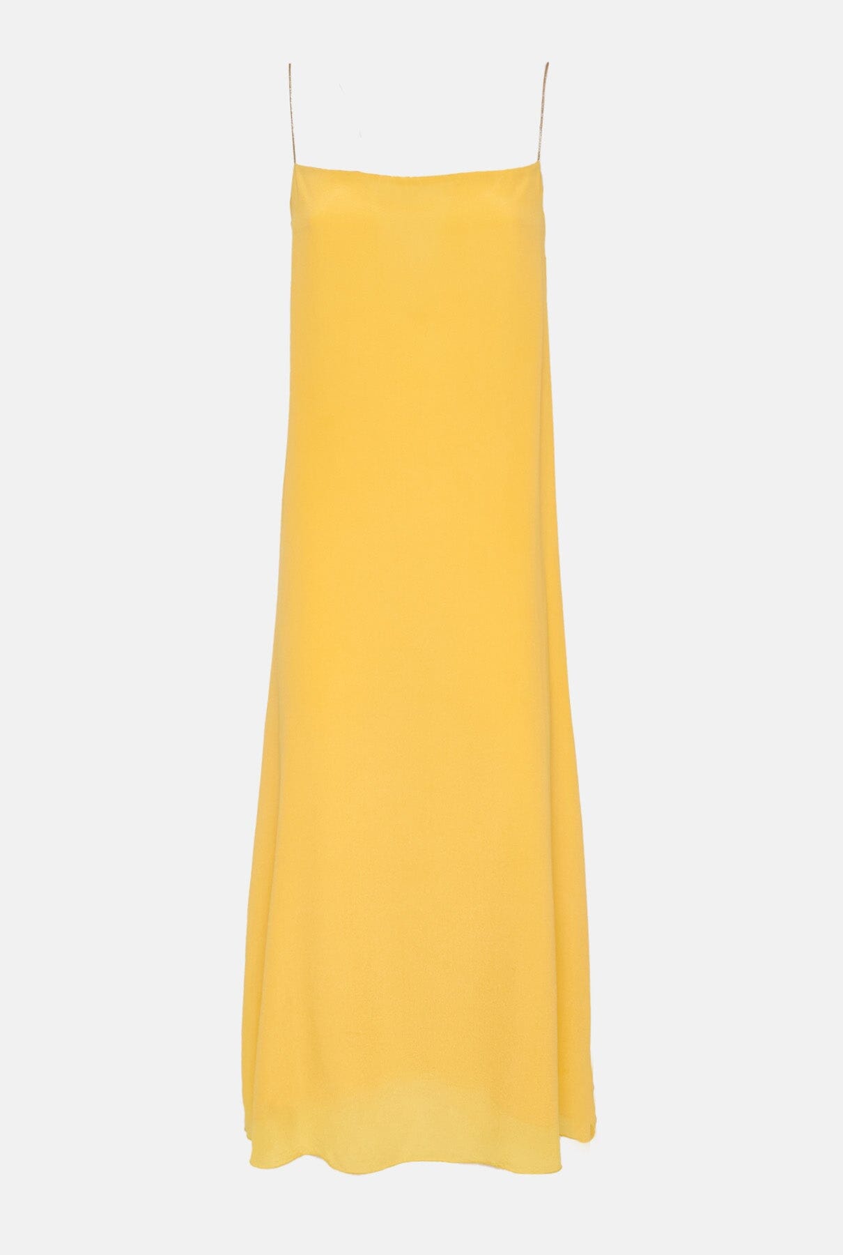 Vestido reversible con tirantes finos elásticos. Crepe de seda teñido naturalmente con Gardenia.