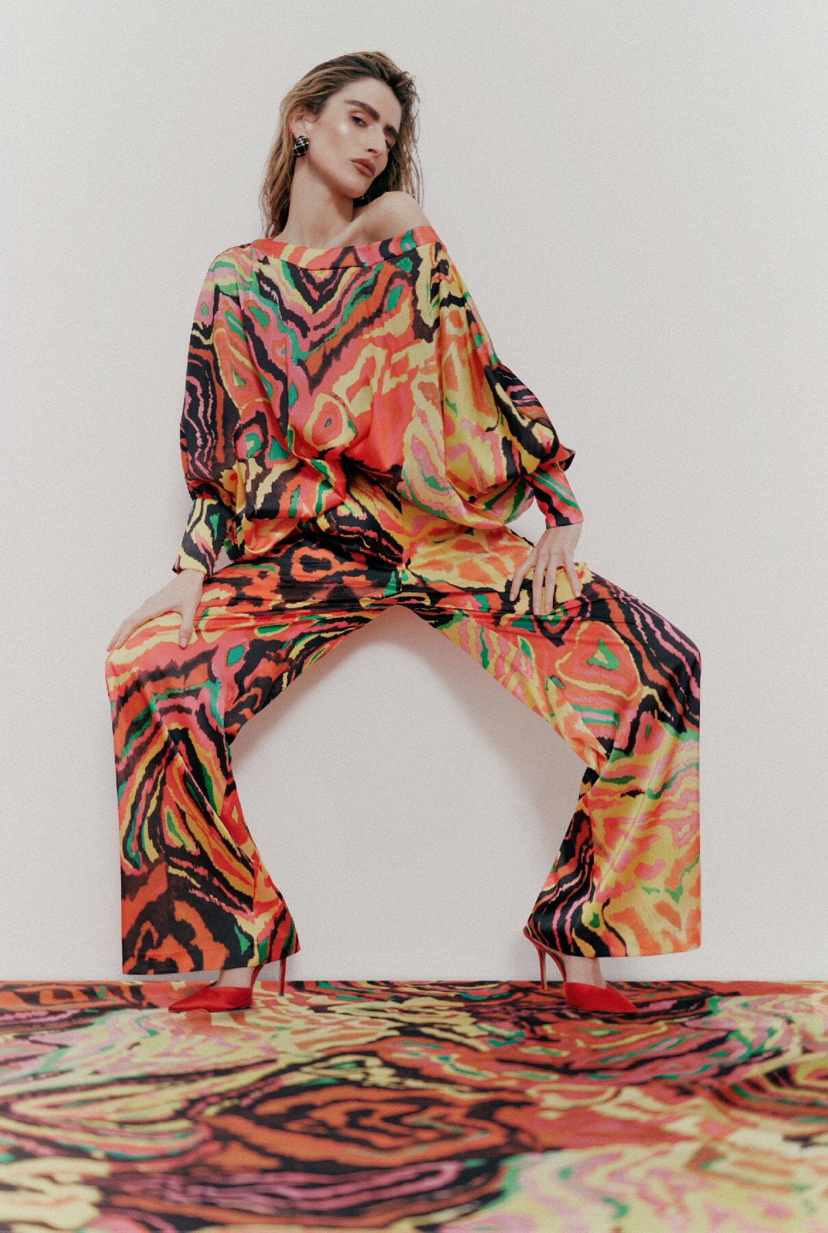 Blusa amplia con escote barco y puños.