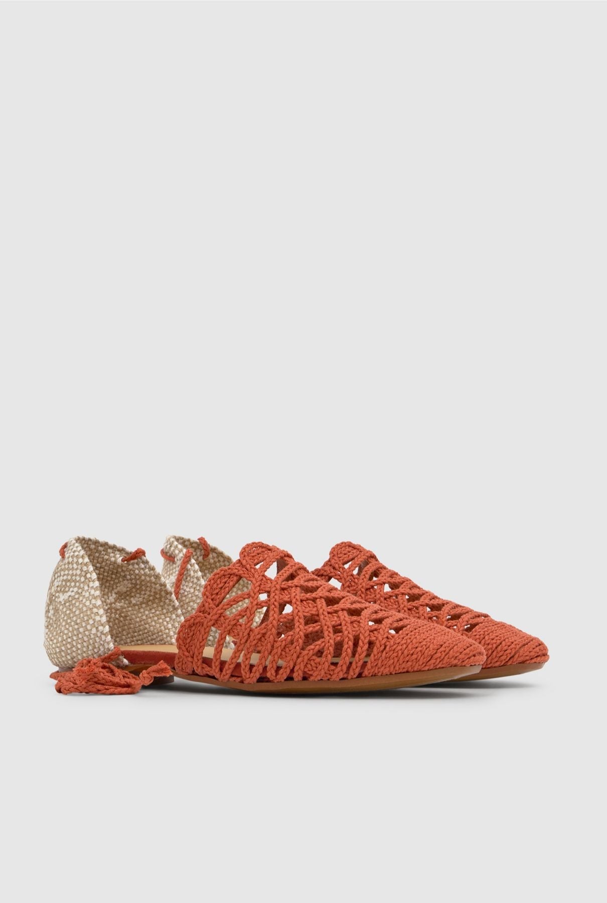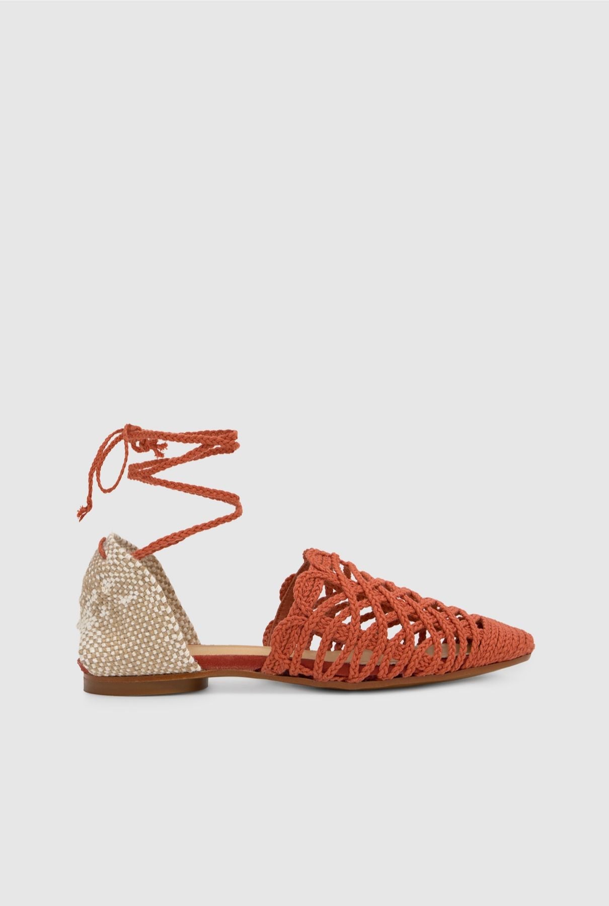 Alpargata plana Genoveva de algodón trenzado a mano con cierre de cordones a juego y plantilla acolchada.