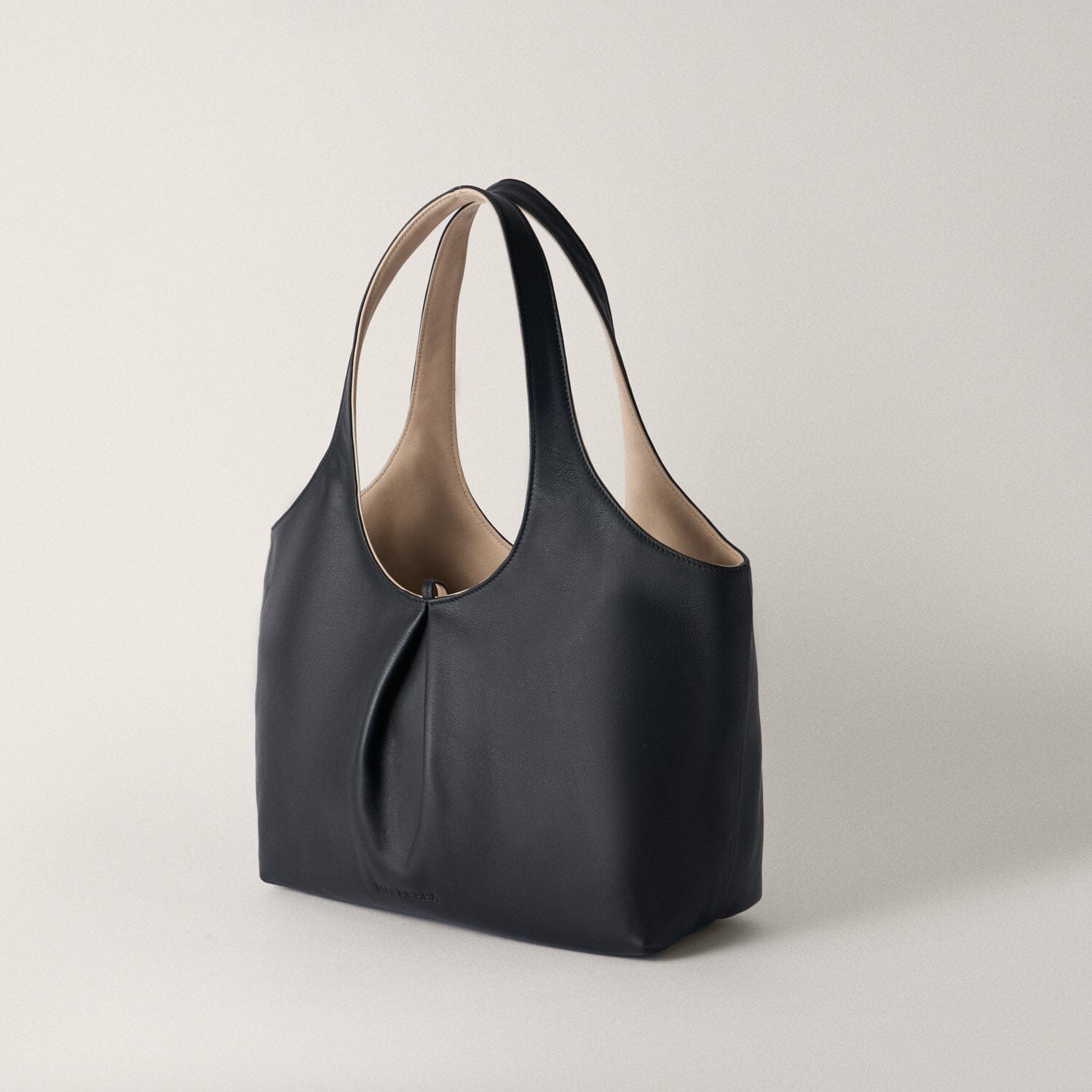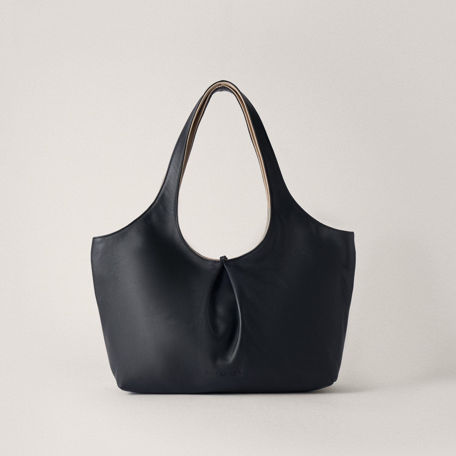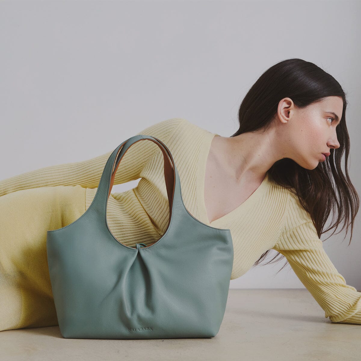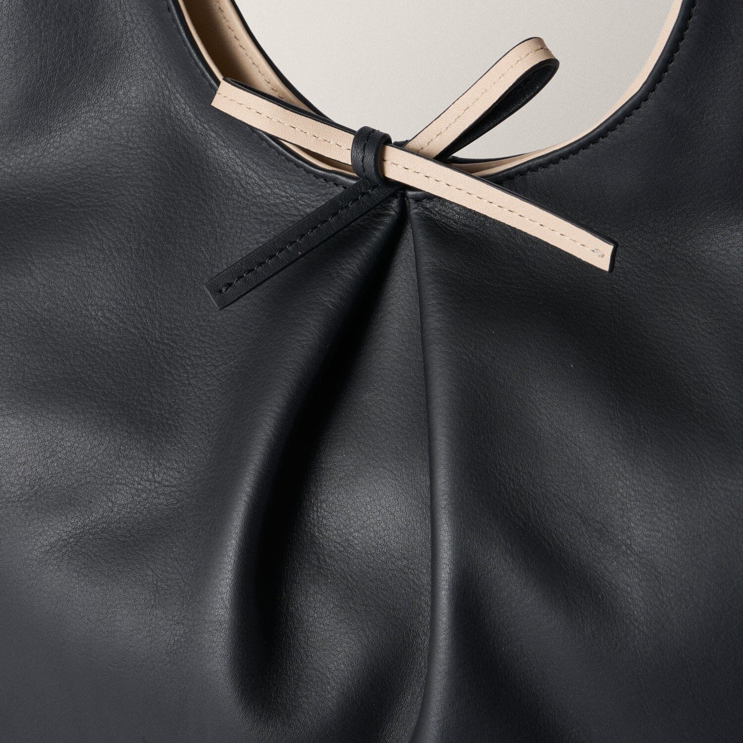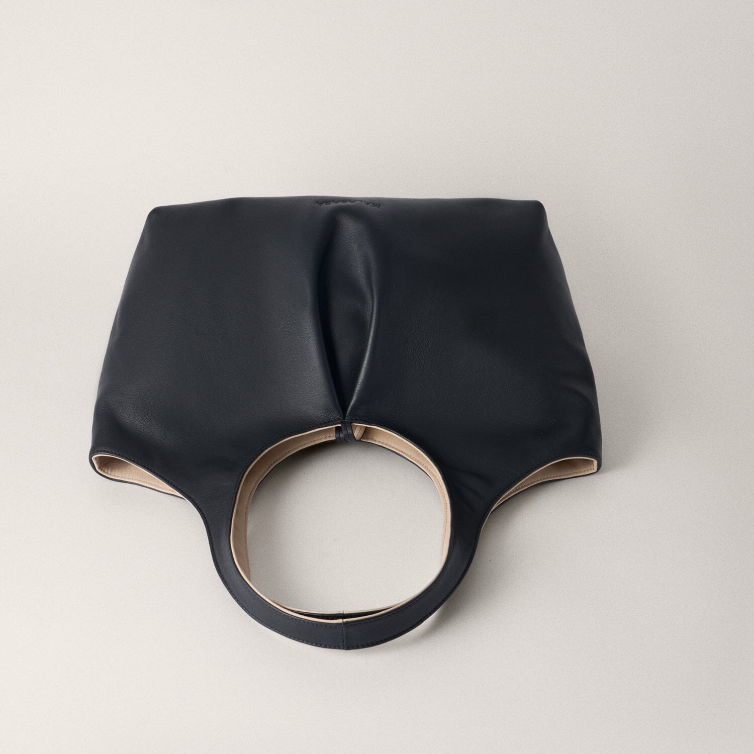 Bolso mediano, en piel extremadamente suave.Con un diseño a 2 tonos de color, el exterior y el interior, ambos en piel de vacío.