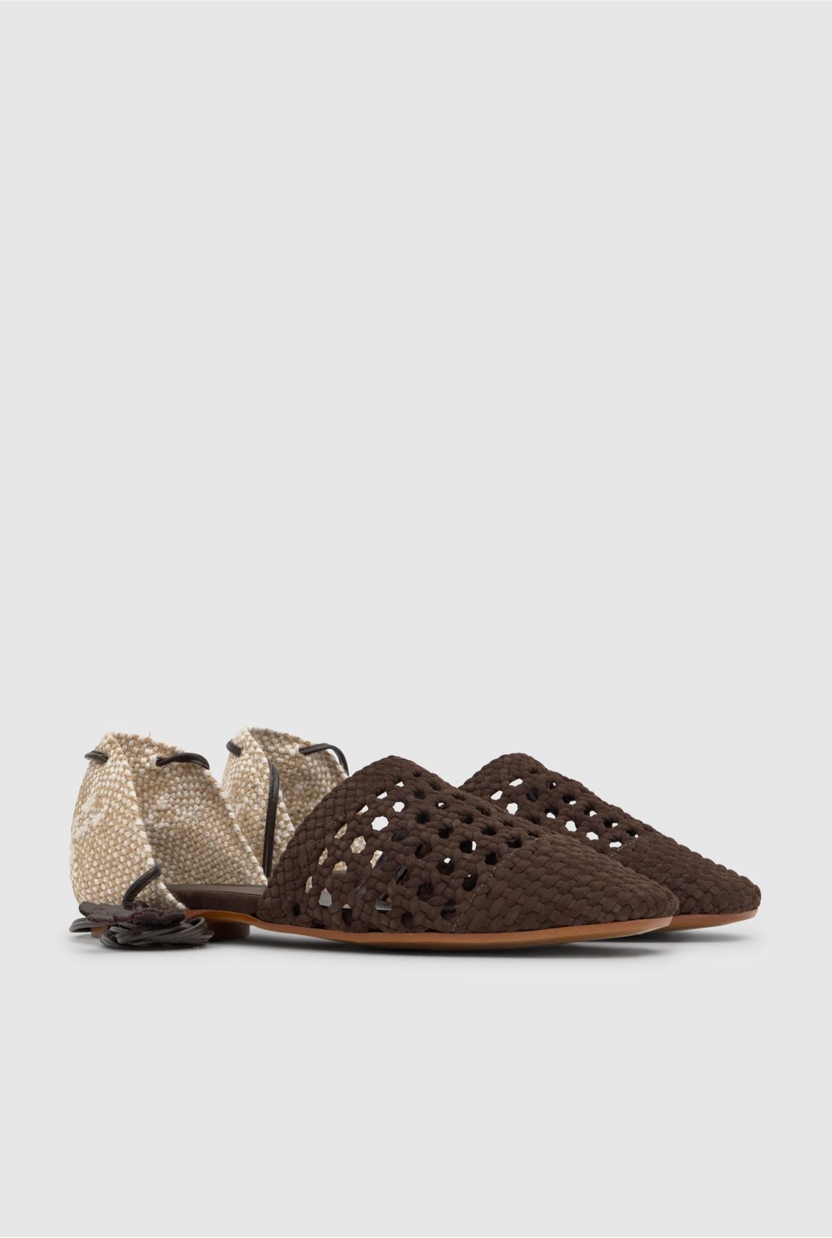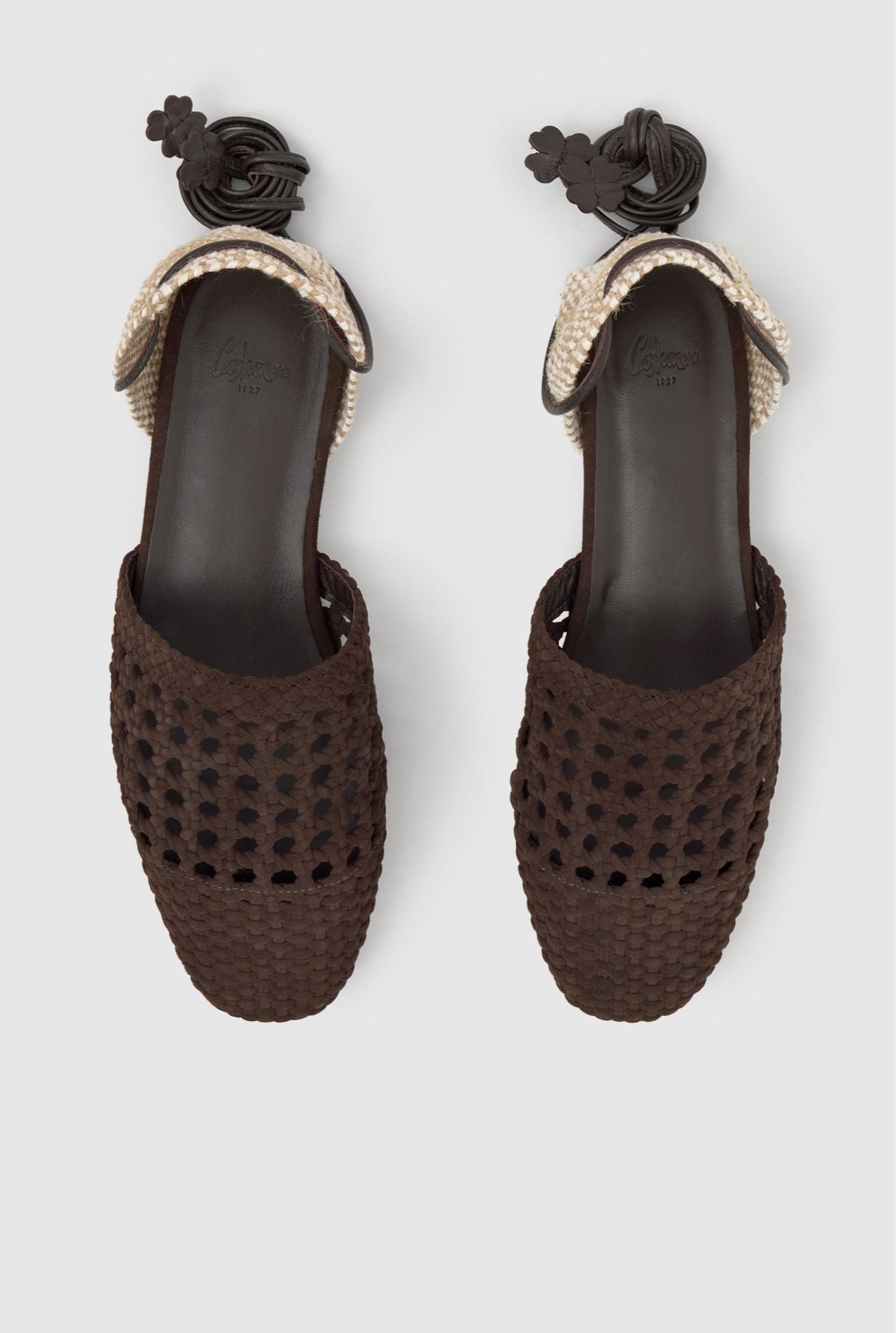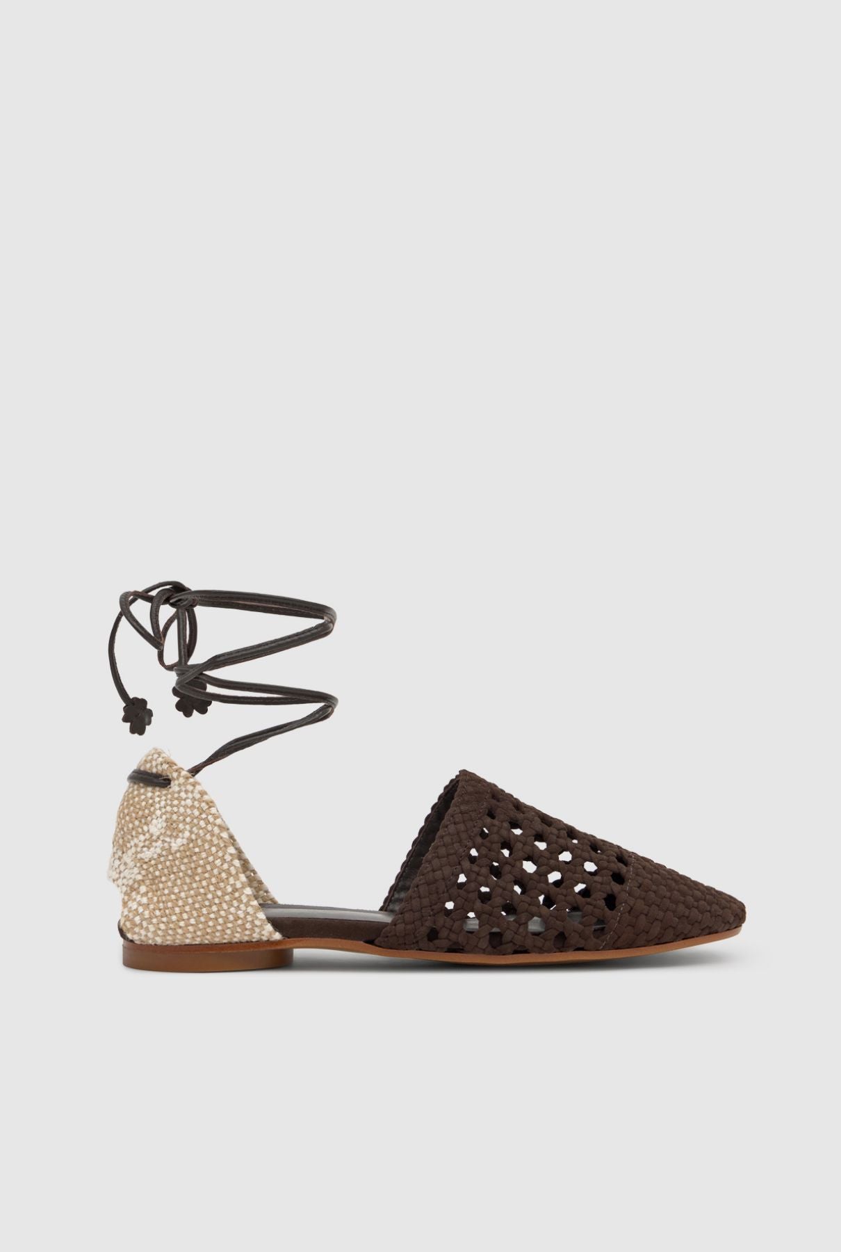 Alpargata plana Gonza en ante trenzado a mano con cierre de cordones a juego y plantilla acolchada.