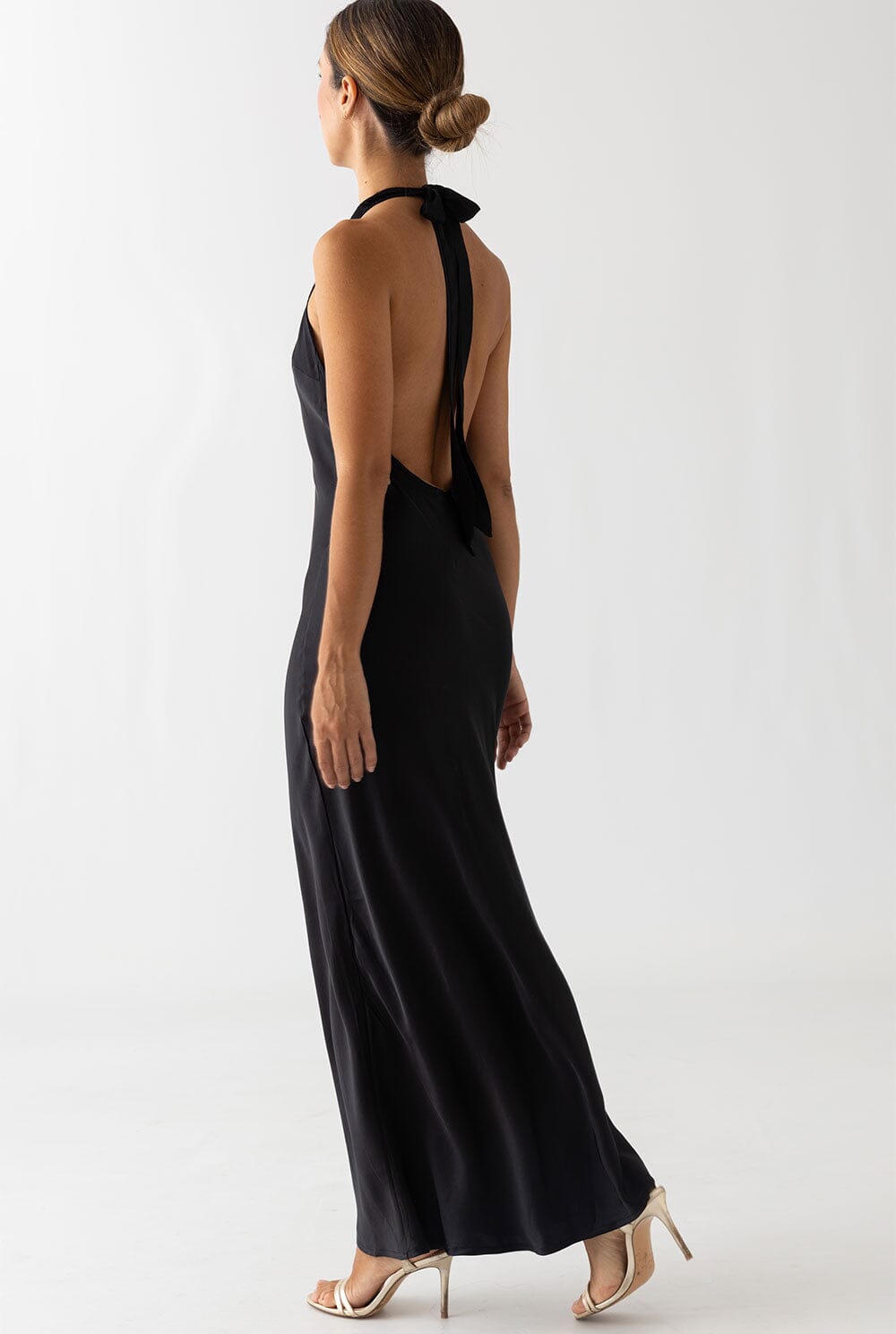 Villã Concept presenta un vestido de cuello halter con efecto satinado confeccionado en tejido 100% viscosa. Con un diseño que fusiona sencillez y elegancia manteniendo siempre un estilo sofisticado. Este vestido te transportará a tu mejor versión con sus líneas puras y suaves.
