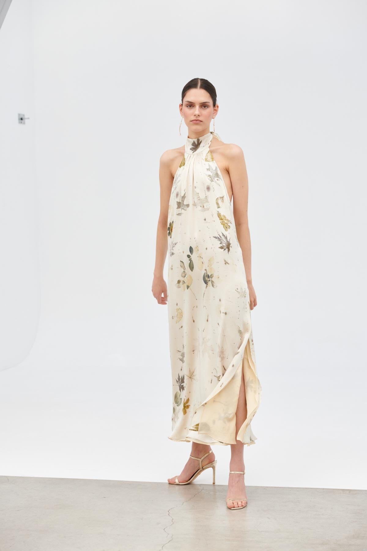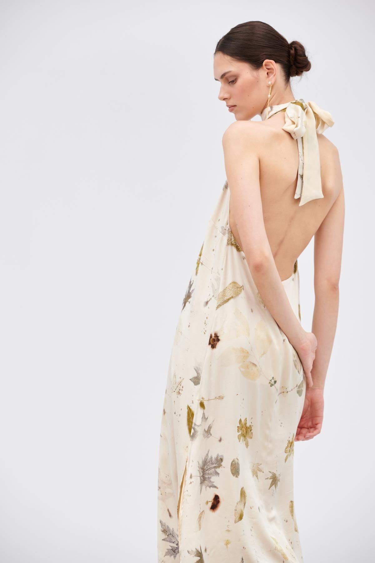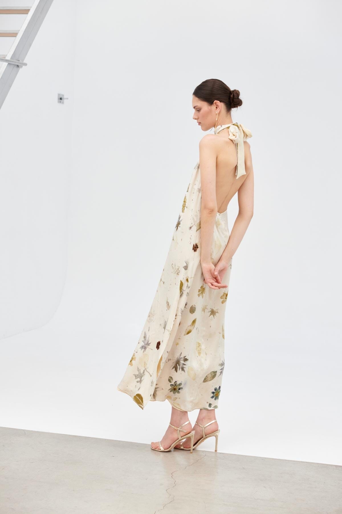 Vestido con mangas de organza, mangas de organza teñidas de forma natural.