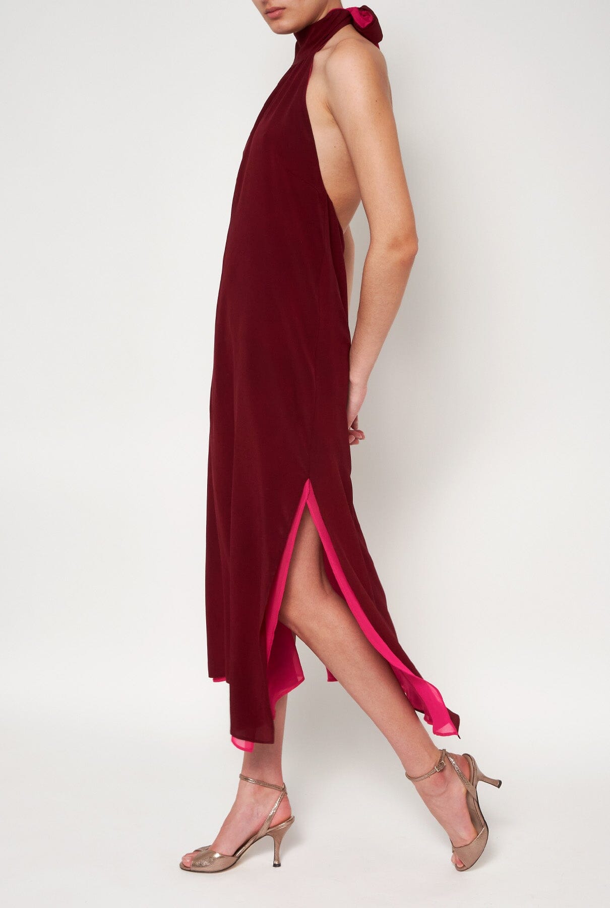 Un vestido sin mangas muy elegante y versátil, fácil de llevar con tacones, bailarinas, sandalias o deportivas. Está confeccionado en crepe de seda 100% y es reversible, por lo que podrás usarlo dos días seguidos o cambiar de color cuando quieras. Viene con cinturón, y un pañuelo largo bicolor te permite atarlo como quieras alrededor de tu espalda o alrededor de tu cuerpo a modo de cinturón. Como todo en Aletheia, este vestido está elaborado con tintes naturales provenientes de plantas. Para esta pieza hemos utilizado keria lacca.