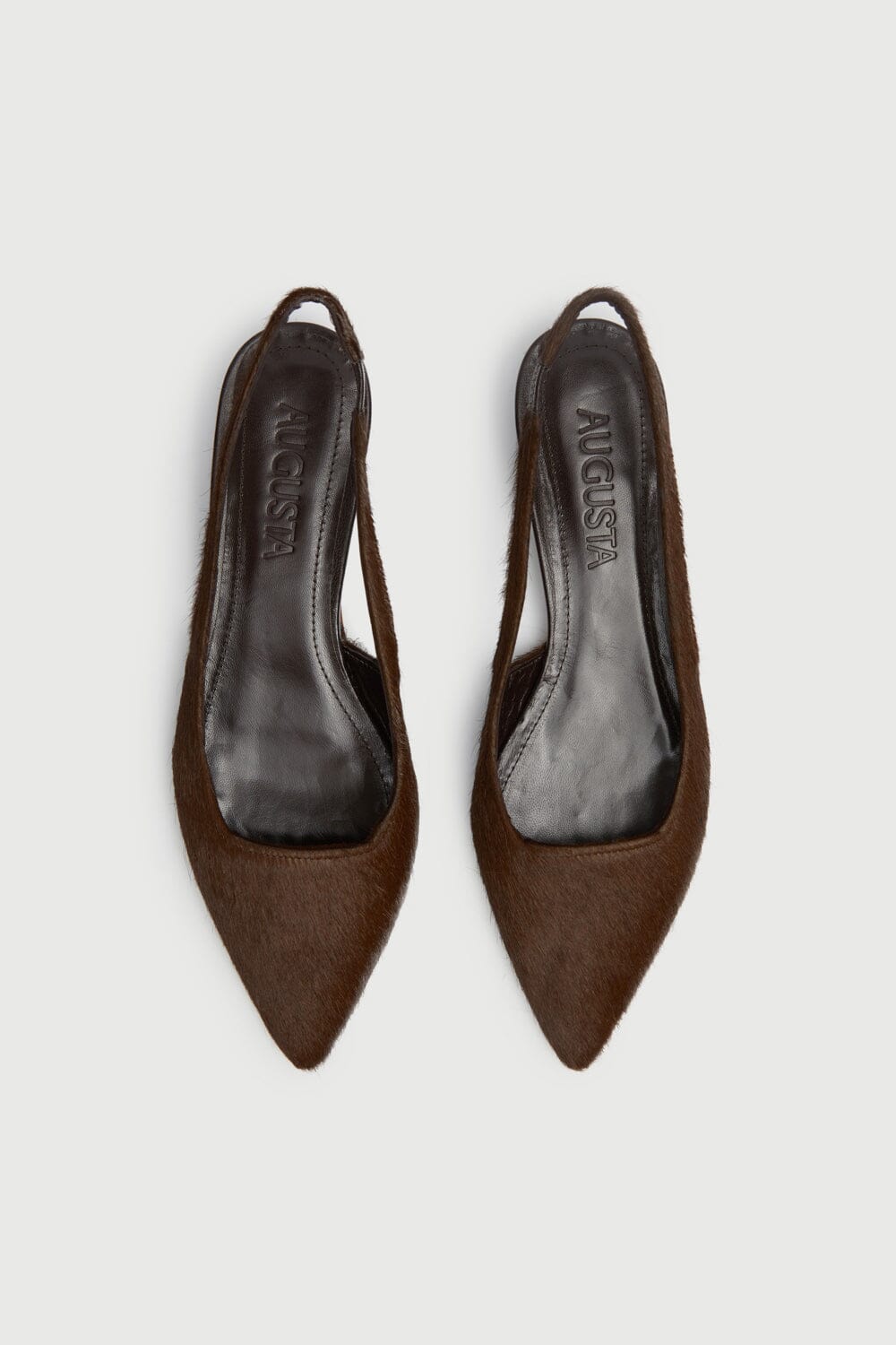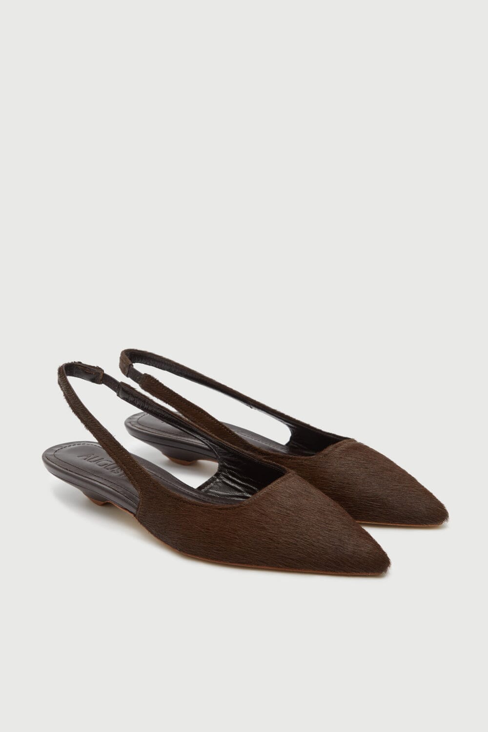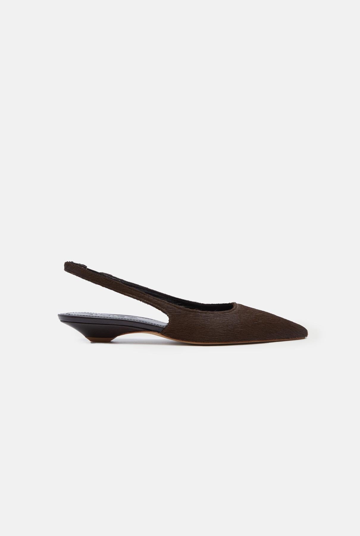 Refined and effortlessly chic, Harper in chocolate calf hair is a timeless statement piece. The pointed toe and deep brown hue create a sleek, elongated silhouette, while the calf hair texture adds a touch of luxury. A low kitten heel offers just the right amount of lift for day-to-night wear, and the slingback strap ensures a secure yet comfortable fit. Whether paired with tailored trousers, skirts, or denim, these slingbacks bring a sophisticated edge to any outfit with minimal effort.