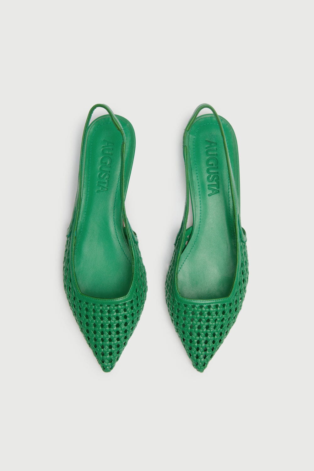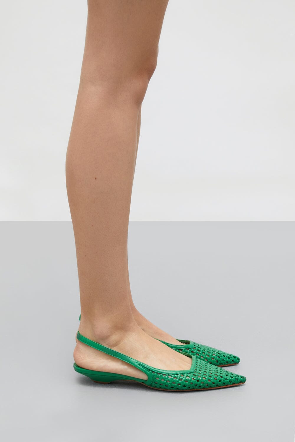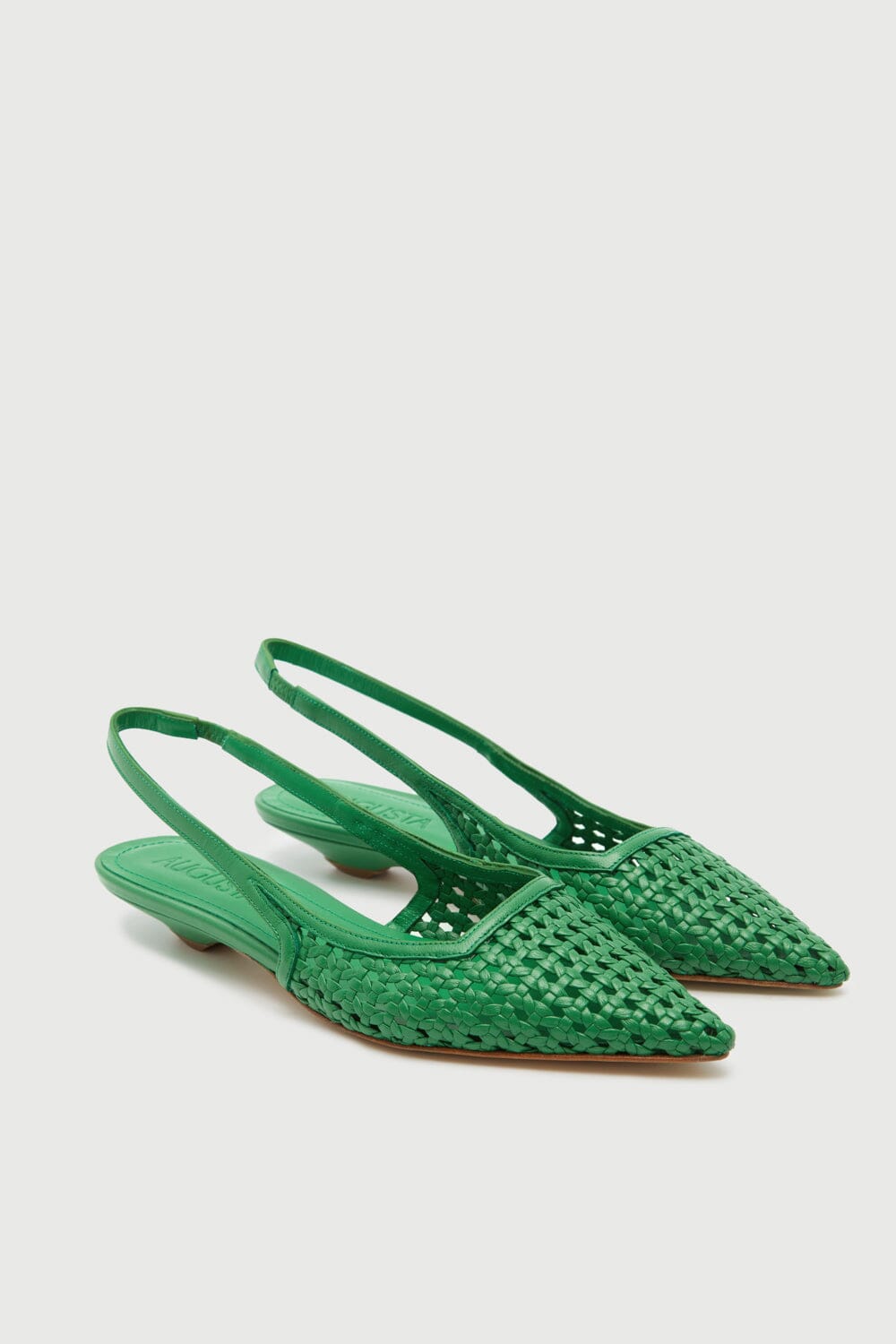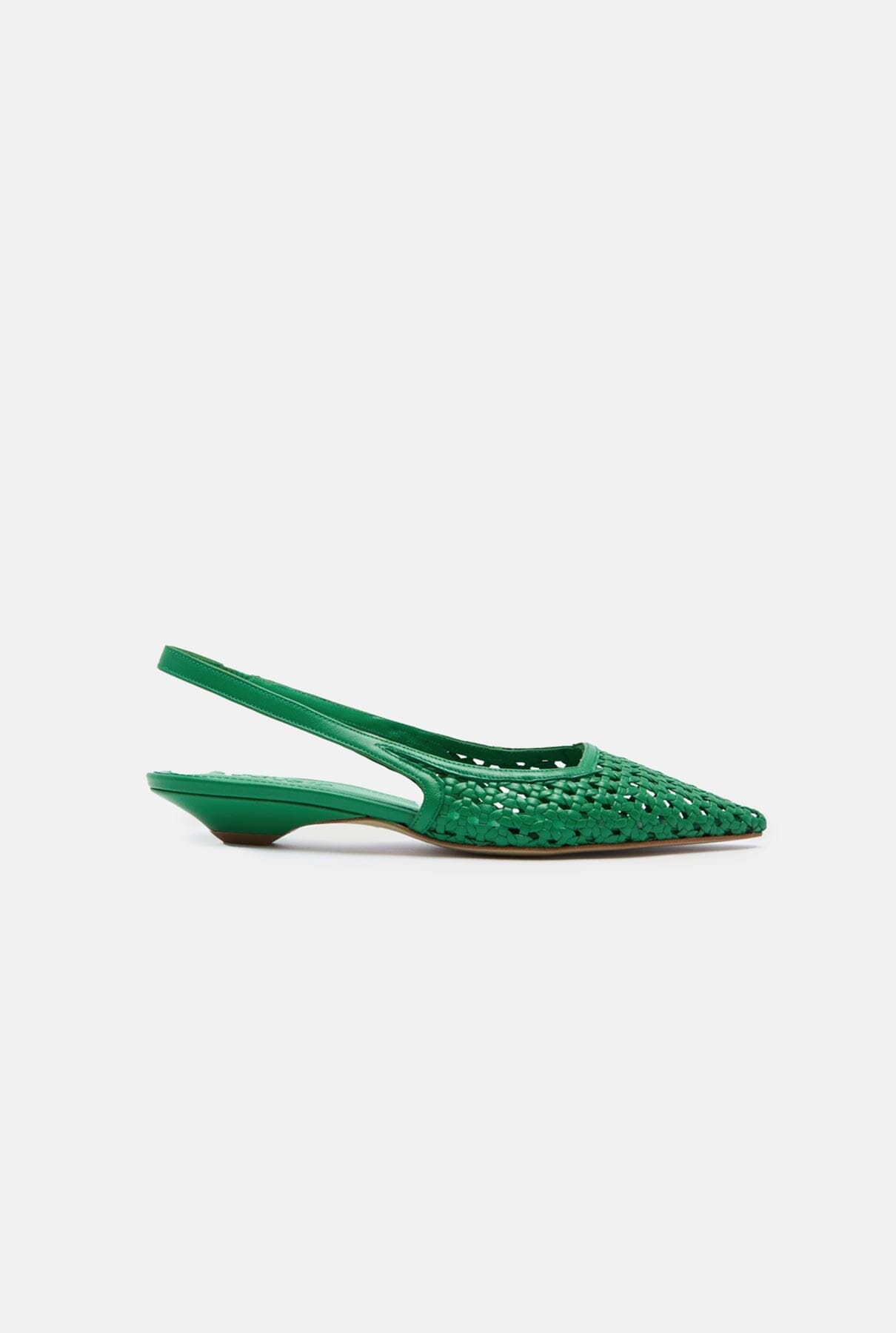 Step up your style game with these slingback in green woven leather – the perfect blend of sophistication and ease. Designed with a beautifully handwoven leather upper, these pointed-toe slingbacks bring a breath of fresh air to your wardrobe. The vibrant green hue makes a bold statement, while the low kitten heel ensures all-day comfort.