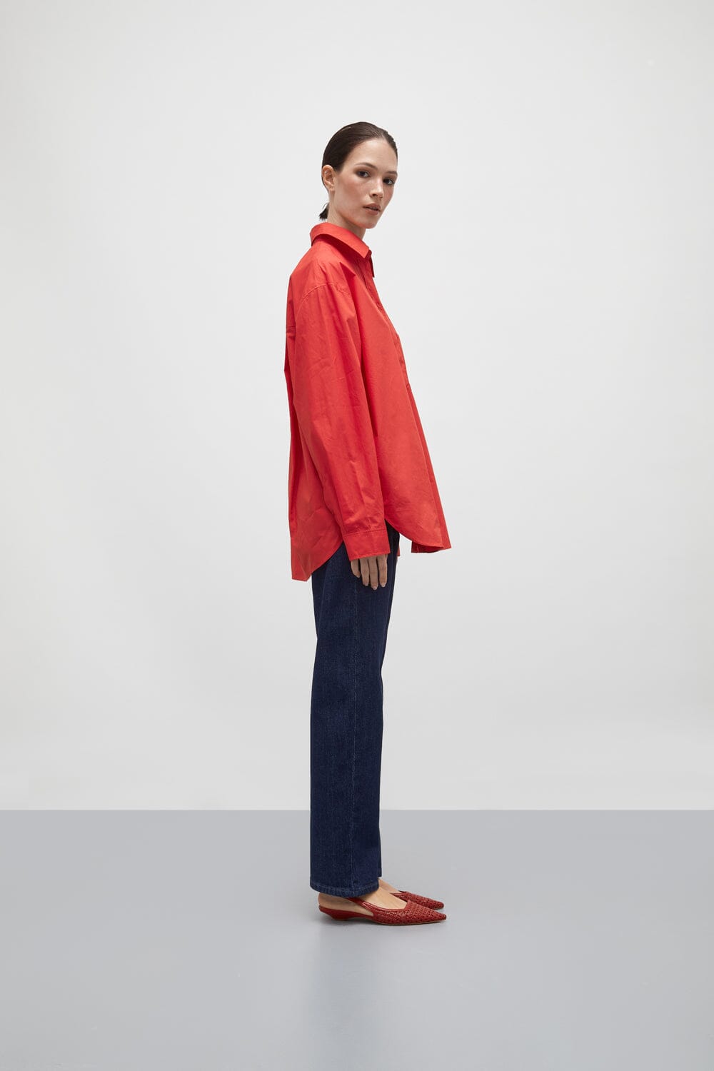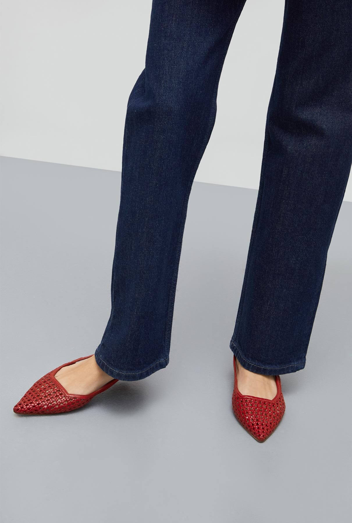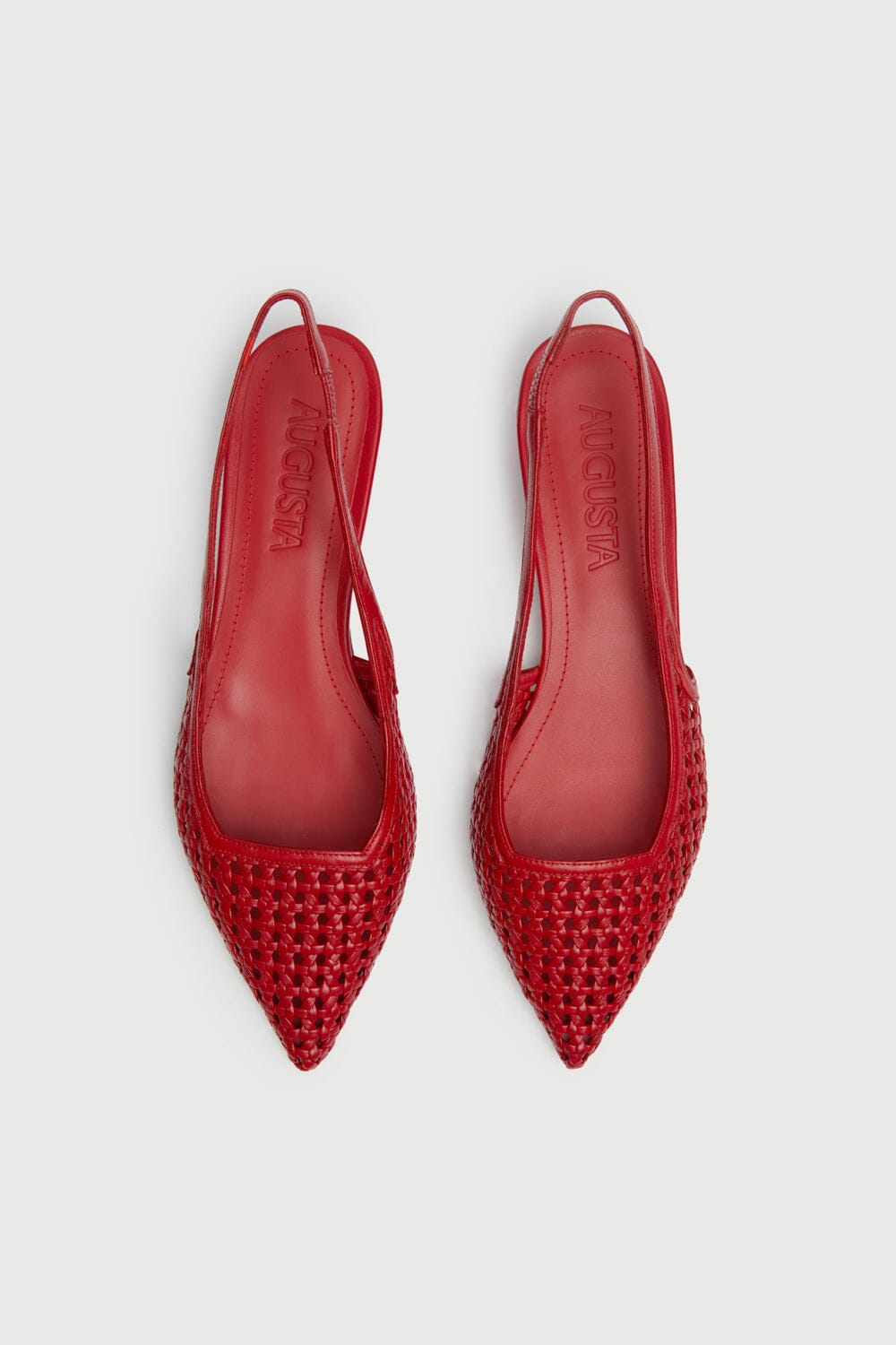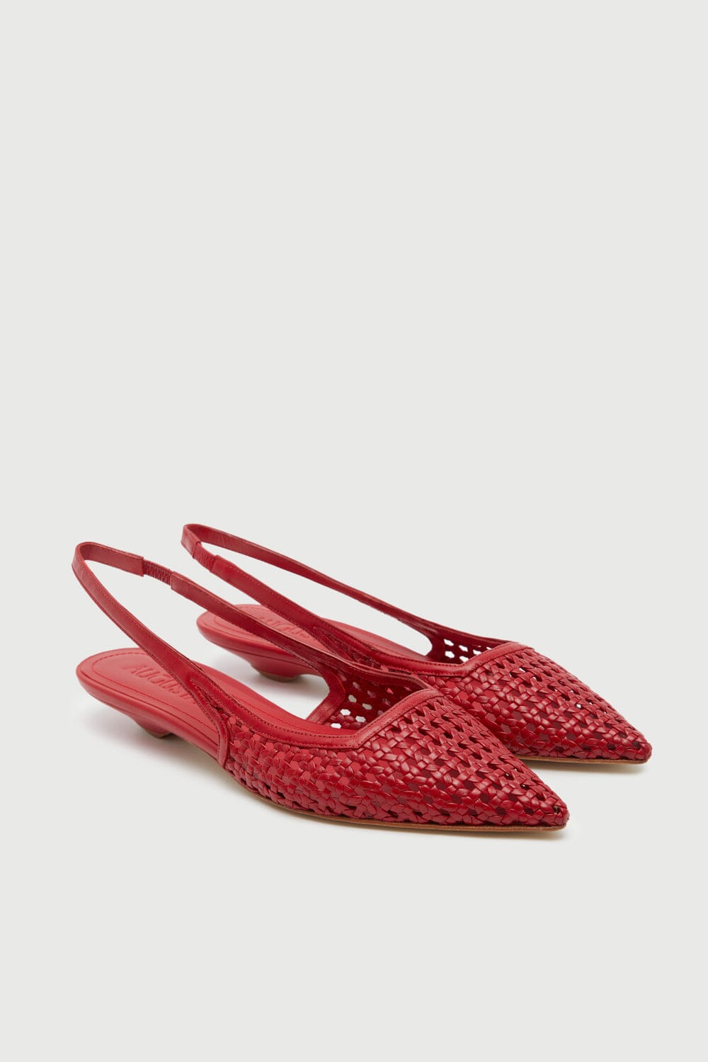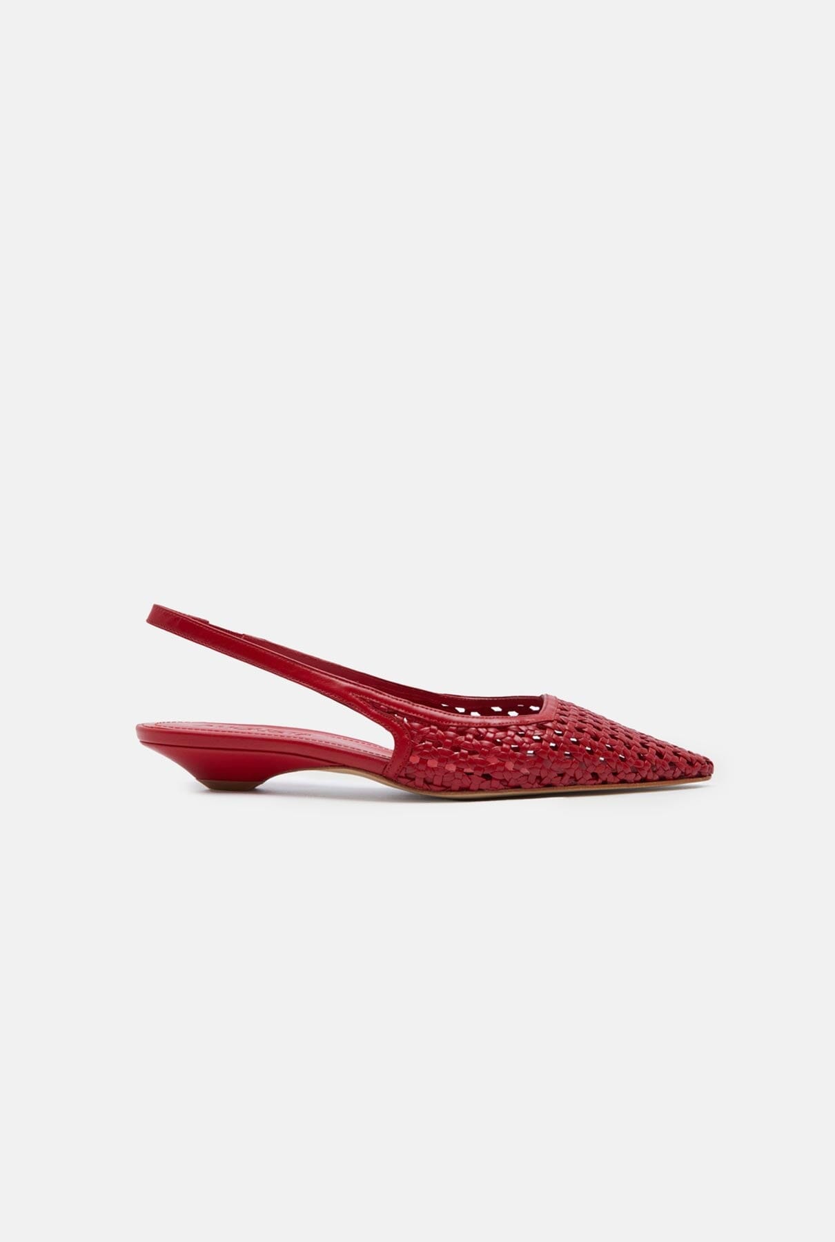 Turn heads with these slingbacks in red woven leather – a statement shoe that exudes confidence and elegance. Crafted from handwoven leather, these pointed-toe slingbacks blend artisan craftsmanship with modern sophistication. The fiery red hue adds a bold touch to any outfit, while the low kitten heel offers effortless comfort.