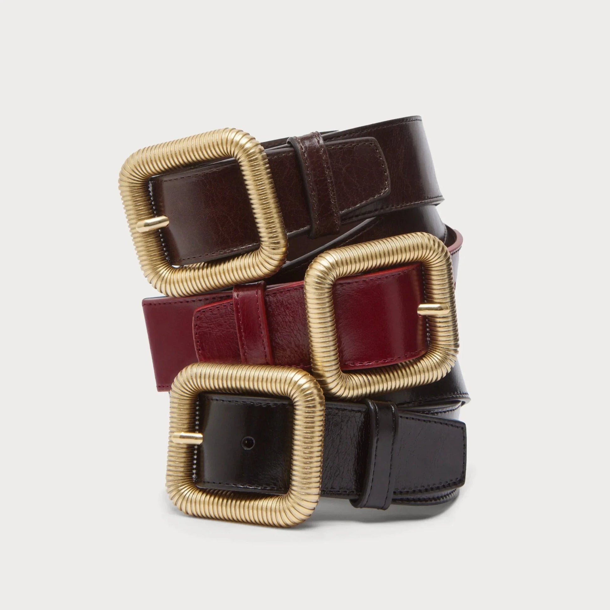 El nuevo cinturón Iria en color burdeos, gracias a su hebilla de inspiración vintage, es un accesorio muy especial y versátil para tus looks del día a día. Puedes llevarlo en la cadera o en la cintura, con blazers, para darle un toque especial a un look casual o a tus looks más sofisticados. El complemento perfecto para tus conjuntos.