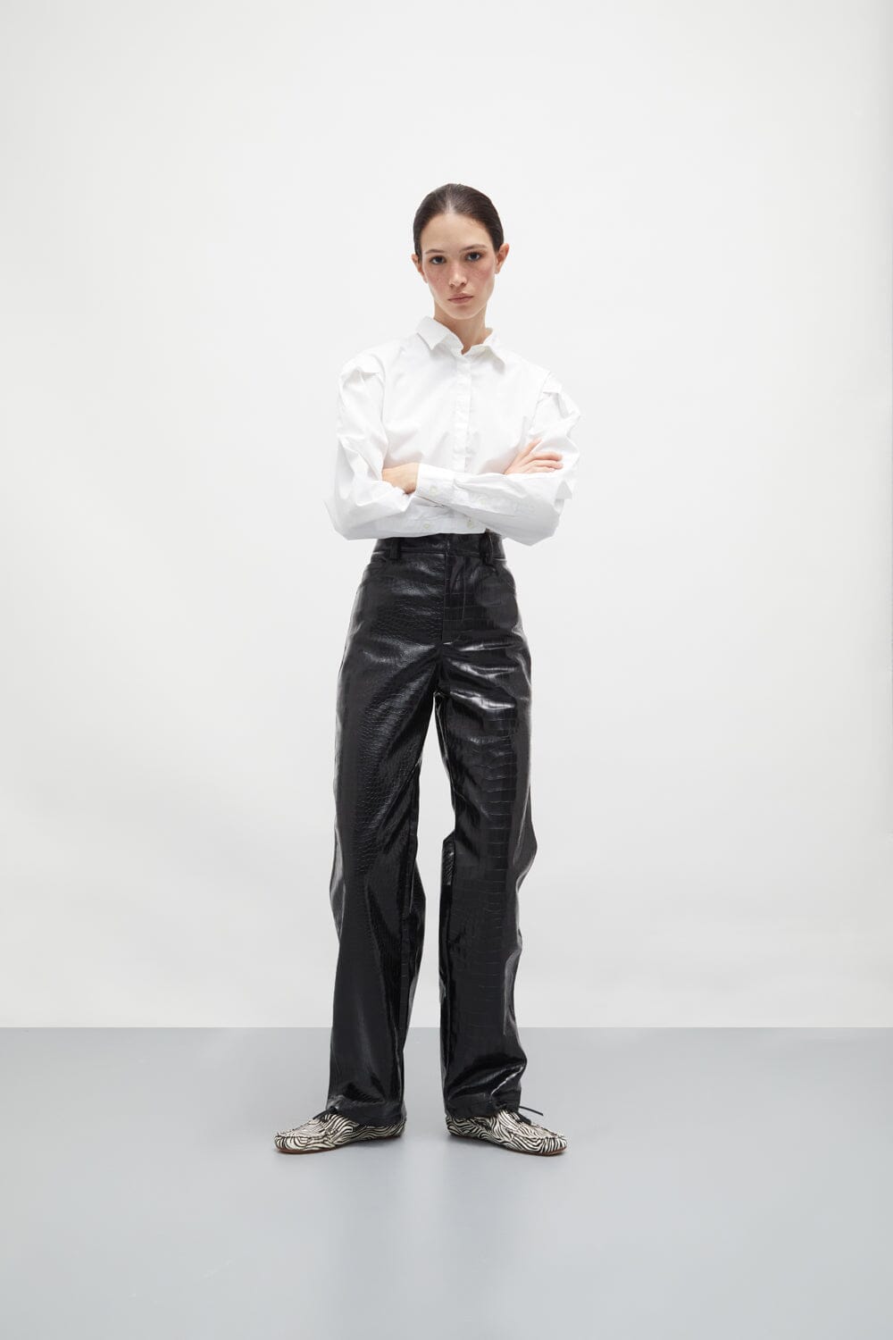 Unleash your wild side with these striking zebra-print moccasins. Crafted from soft leather with a bold black-and-white pattern, these shoes bring an adventurous twist to a classic design. The boat shoe-inspired details, like the lace-up bow and side eyelets, add a touch of timeless style, while the daring zebra stripes ensure you stand out. Perfect for adding a playful yet chic accent to your wardrobe, these moccasins combine comfort with statement-making flair. Whether you're heading out for a casual day or elevating a laid-back look, these shoes are sure to turn heads.