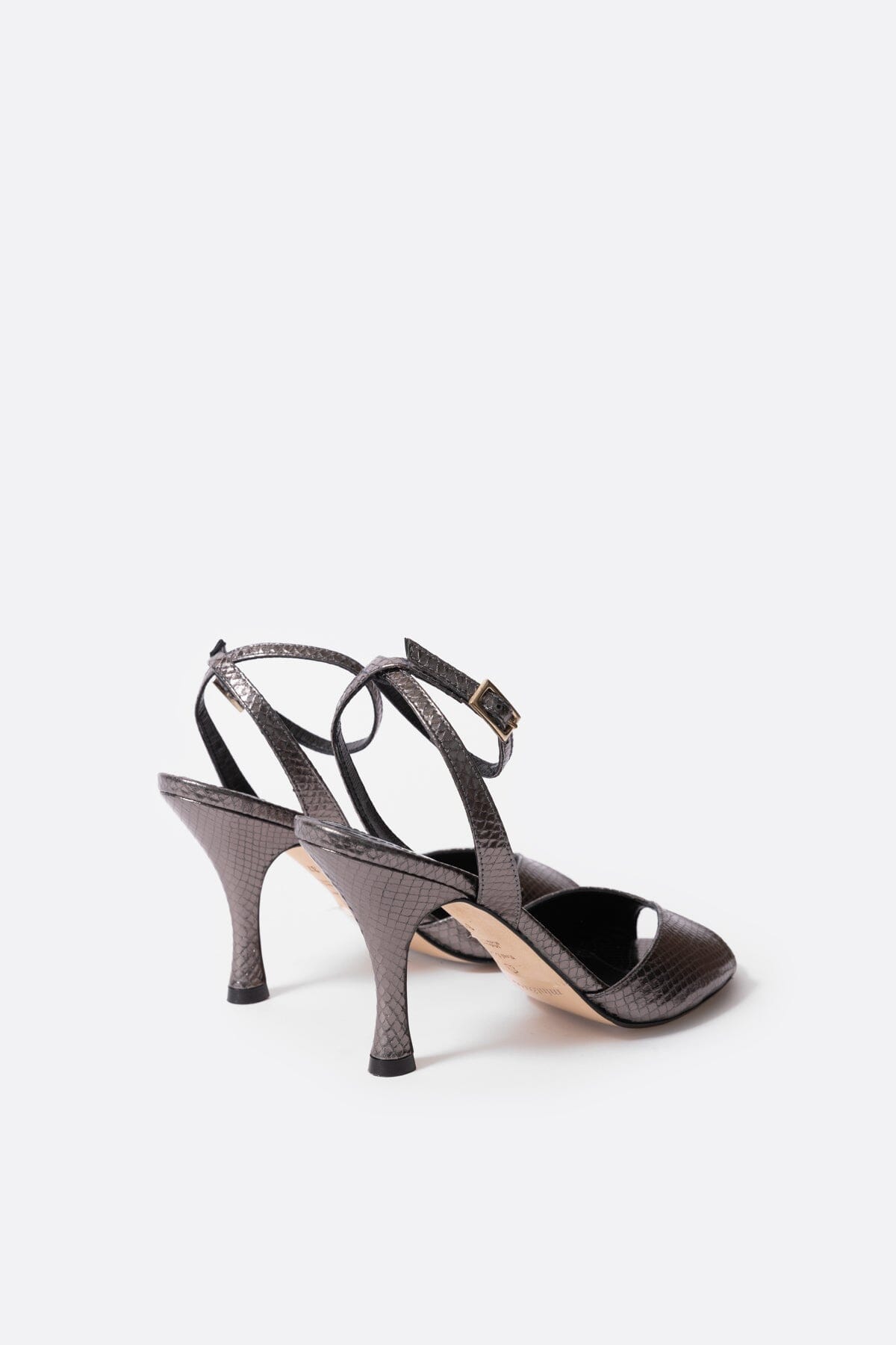 Jacqueline is a timeless sandal with a retro-inspired design. They have a super thin ankle strap to hold the ankle in place and lengthen the leg, a narrow 9 cm bell-shaped heel for stability, a cushioned insole with a cloud footbed and a front with a bow neckline;