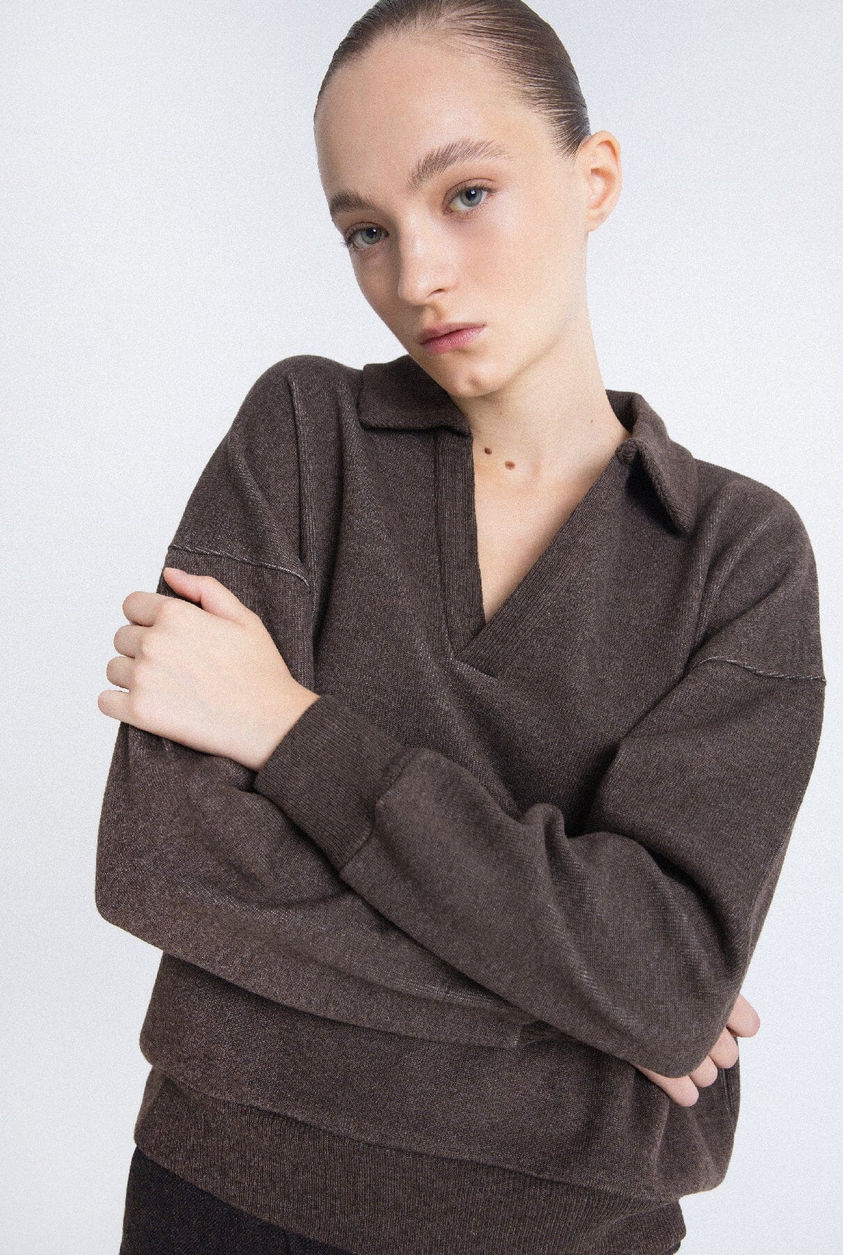 Bleis Madrid presenta en primicia un jersey estilo polo confeccionado en algodón, lana y cashmere, tejidos que destacan por su comodidad y suavidad al tacto. Un nuevo básico que se suma a la línea de punto de la firma, perfecto para combinar con los sastres cruzados o con el pantalón de campana de lana y la chaqueta de cuadros. Para un look cosmopolita y sofisticado.
