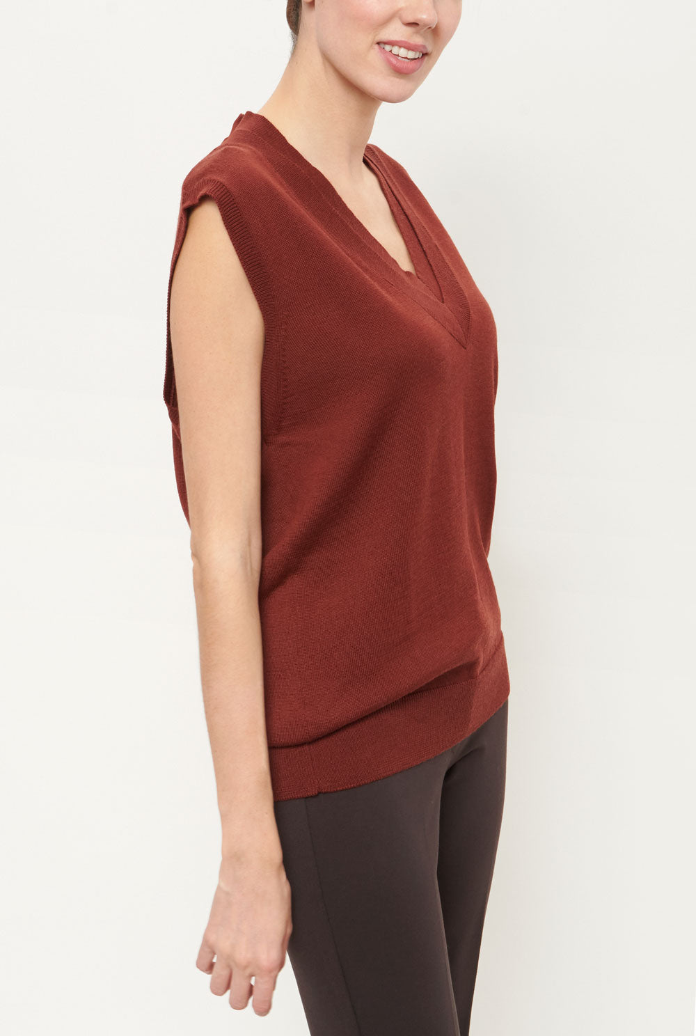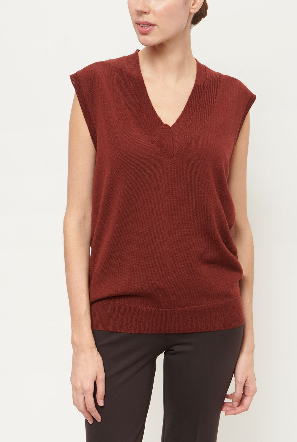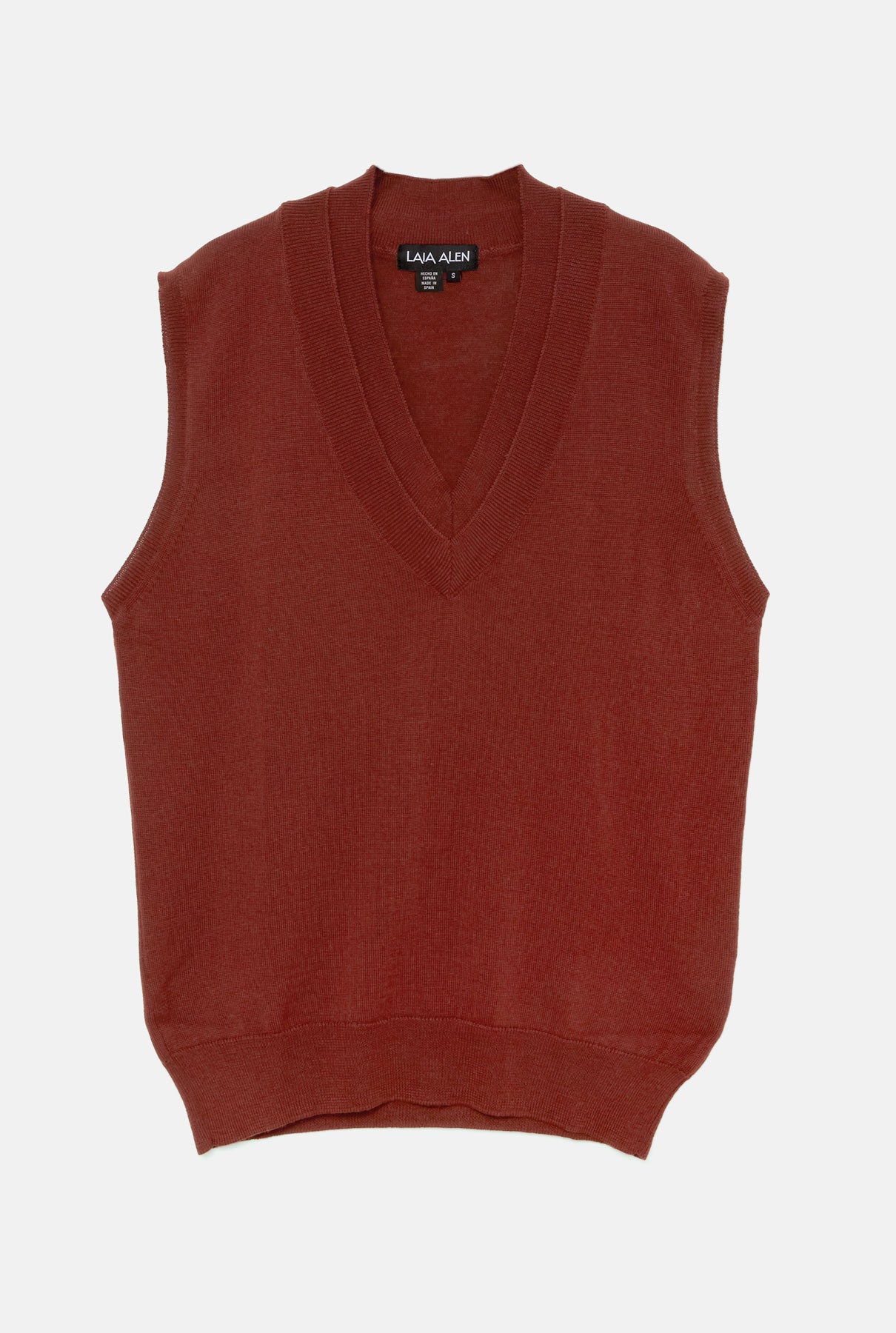 Este jersey ha sido tejido en España con lana suave para un ajuste holgado con un cuello de pico doble. El diseño sin mangas es un clásico de punto atemporal para atesorar en tu guardarropa para siempre. Diseñado por Laia Alen.