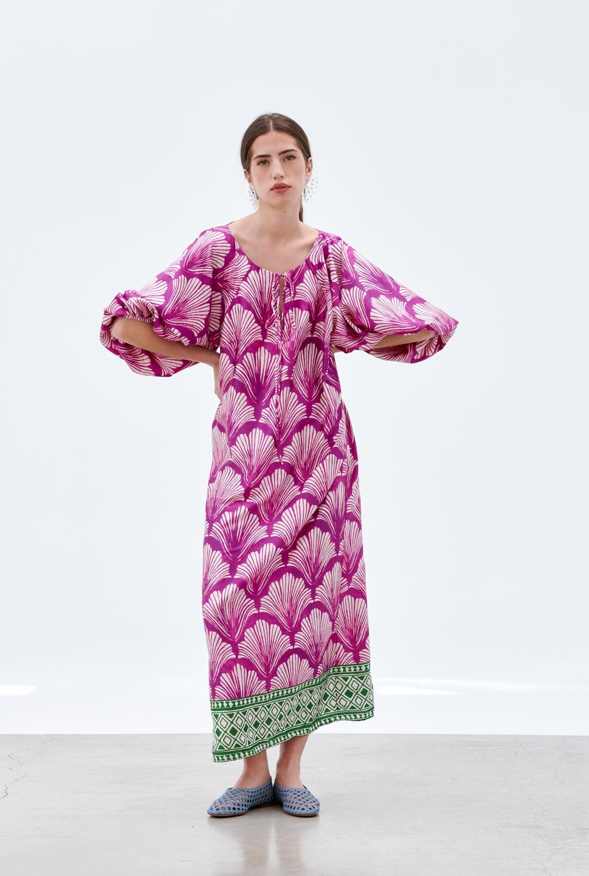VESTIDO KAFTAN CON MANGAS GLOBALES.