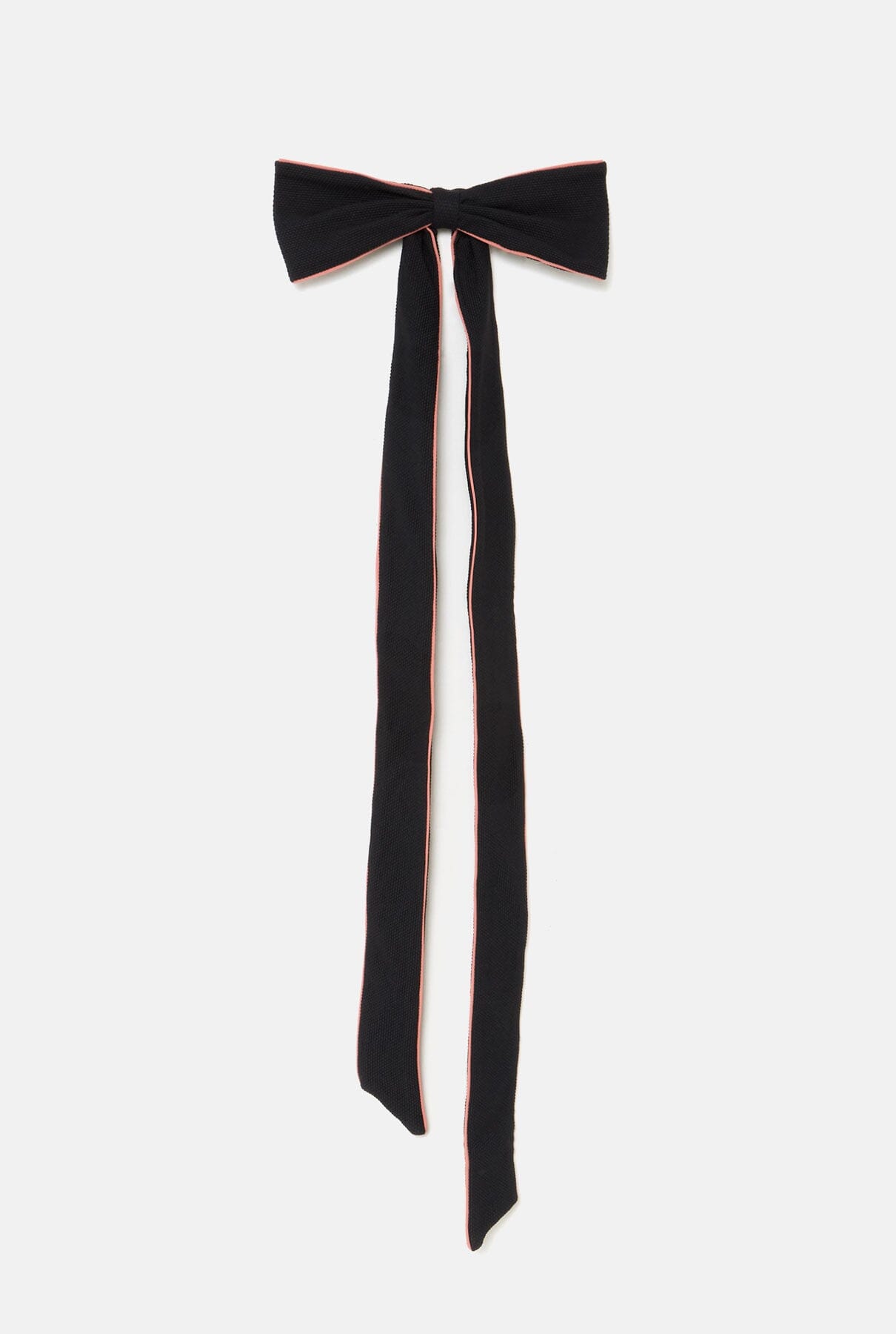 Lazo ideal para lucir el escote trasero del bañador LOLA, en tejido piqué negro con ribetes rosas. Ajustable al nudo del bañador.