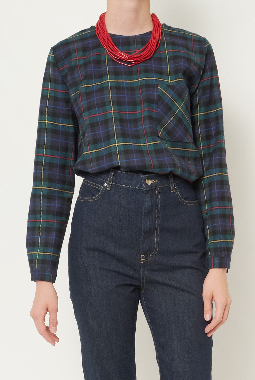 Camisa de cuadros con bolsillo de parche en la parte delantera. Hecho en España