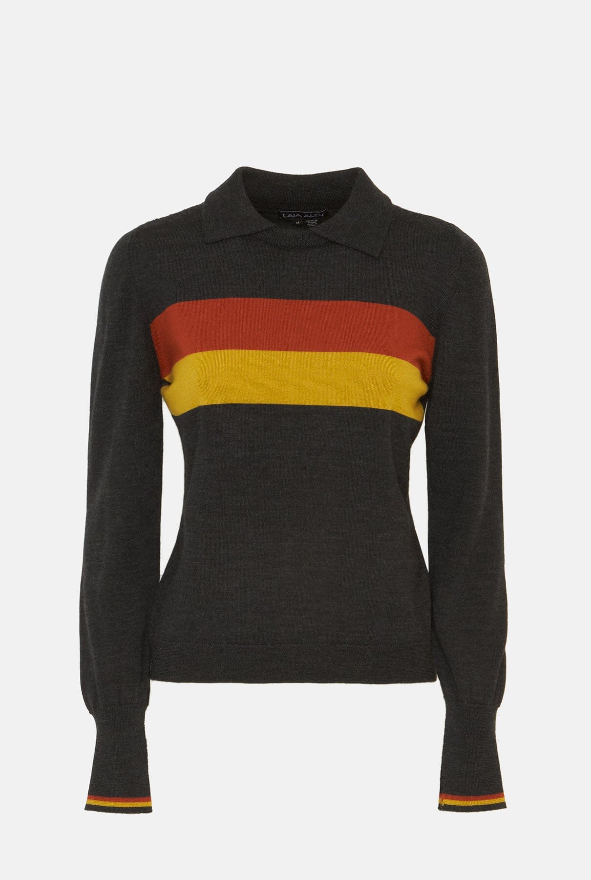 Este suéter de cuello doble está elaborado con una mezcla de lana de alta calidad y cachemira para lograr un tacto maravillosamente suave. Este suéter presenta un panel en contraste en el pecho con dos ntarsias de dos colores y detalles de dos ribetes en los puños.
