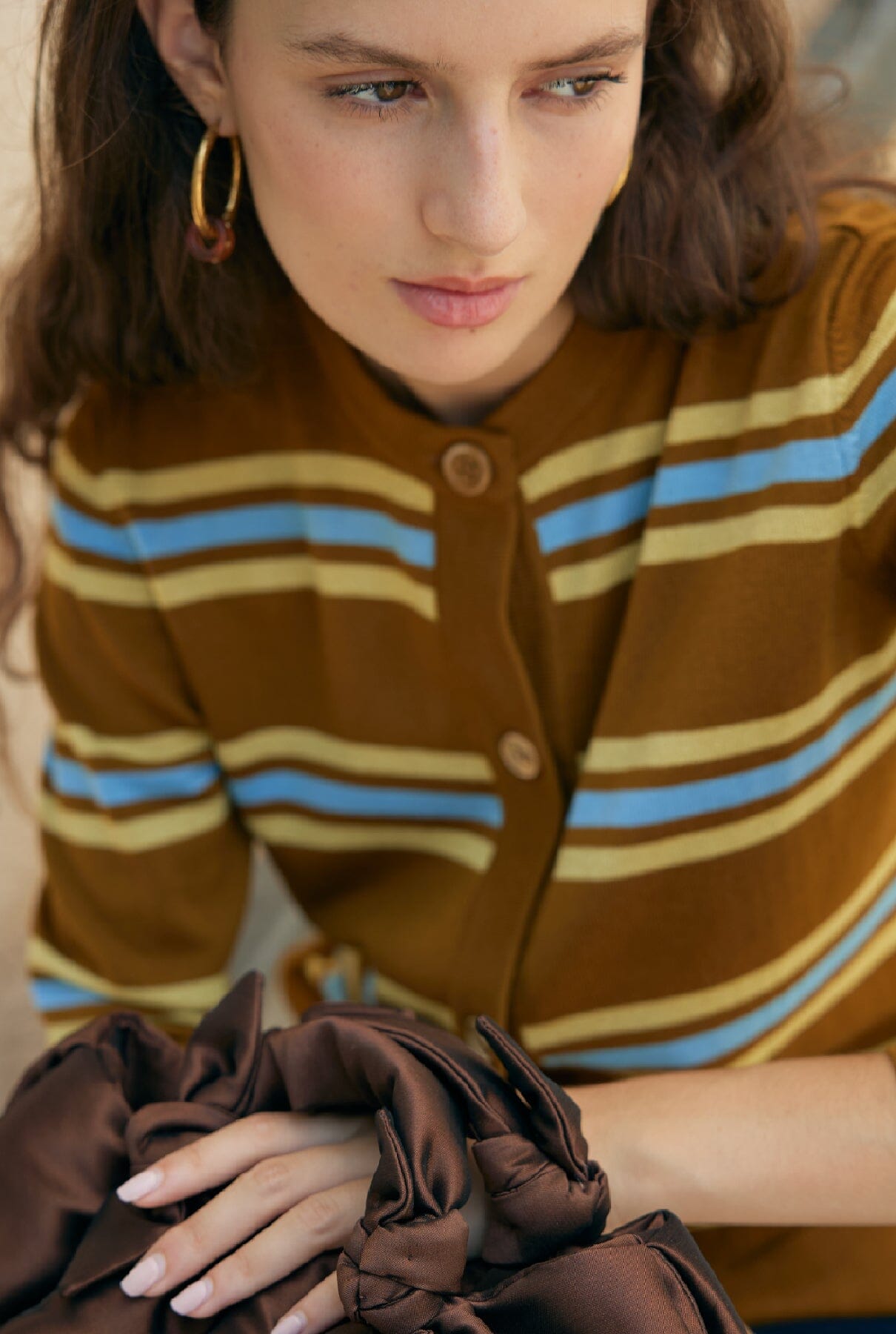 Este jersey de rayas de color verde oliva está elaborado con una mezcla de lana de alta calidad y cachemira. Este jersey está fabricado en España con la mejor lana italiana de Zegna Baruffa. Combínalo con vaqueros y mocasines o con pantalones a medida.