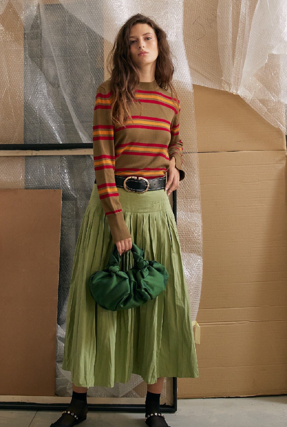 Este suéter de cuello redondo está elaborado con una mezcla de lana de alta calidad y cachemira para lograr un tacto maravillosamente suave. Este jersey presenta rayas en rojo y naranja. Este jersey está fabricado en España con la mejor lana italiana de Zegna Baruffa. Combínalo con jeans y mocasines o con pantalones a medida.