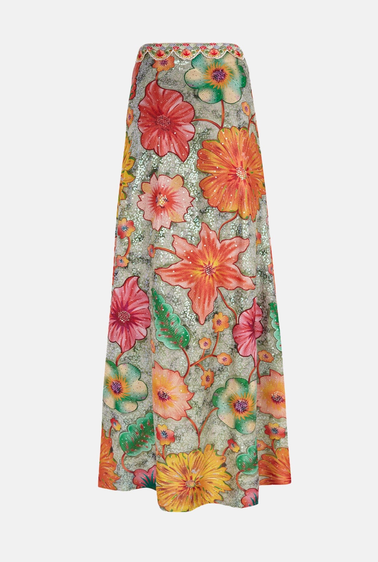 La falda "Maddi" está confeccionada en gasa vaporosa con un favorecedor estampado floral. Diseño de talle alto con delicado detalle de encaje floral. Cierre trasero con cremallera oculta en costura. Forrado en raso.