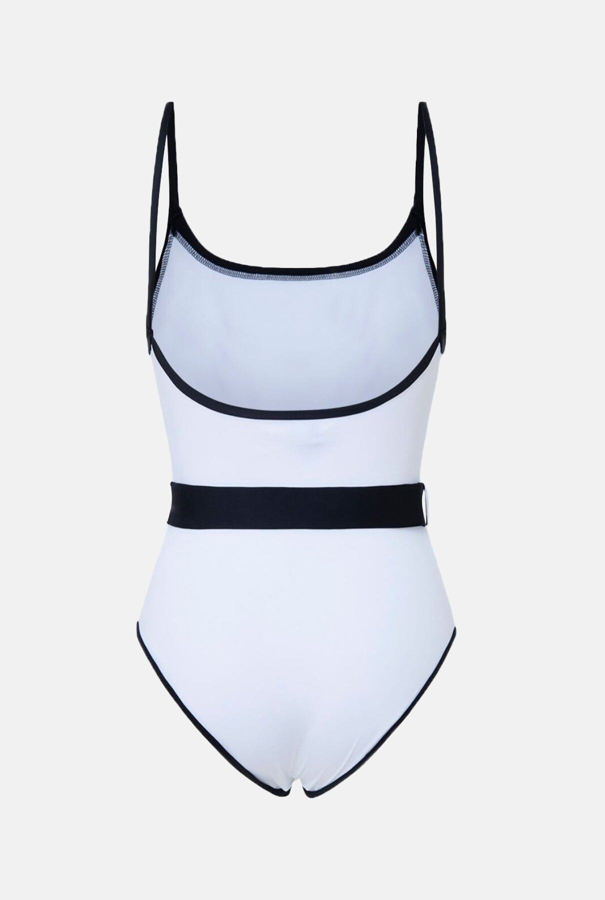 Bañador con escote semicuadrado, vivos a contraste y tirantes elásticos.