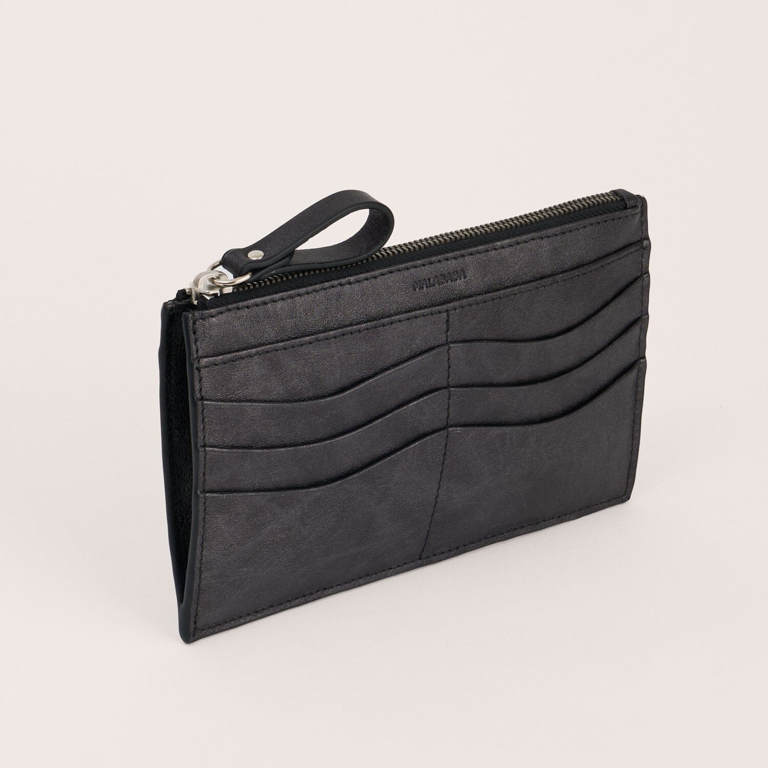 Tarjetero grande realizado en piel de vacuno muy suave. Muy práctico y ligero. Dispone de varios compartimentos para tarjetas, un bolsillo con cierre de cremallera para monedas, y un bolsillo pequeño en la cara trasera para tarjetas, abono transportes o billetes.
