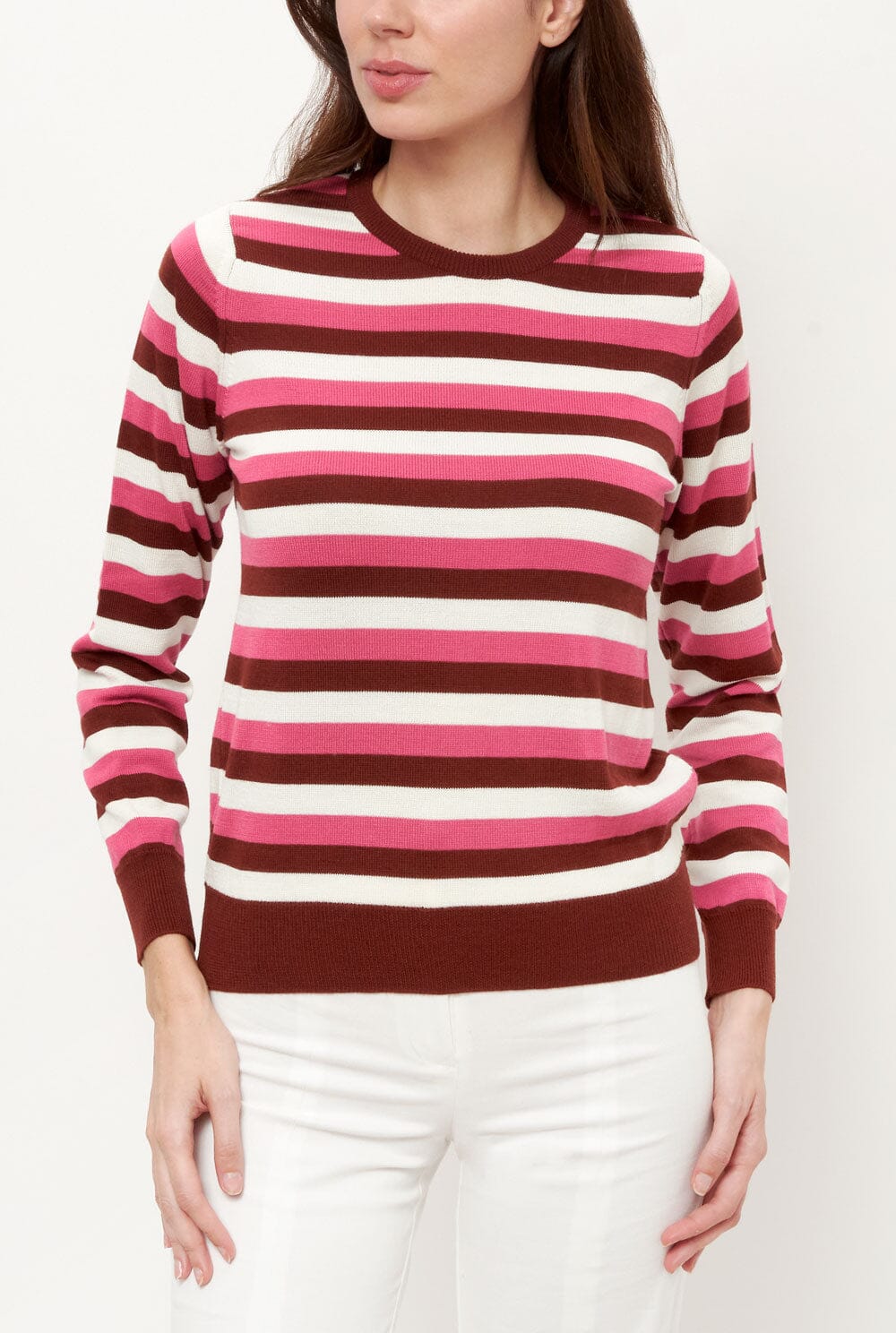 El suéter Marta Crew Neck está hecho de 100% lana Merino que está estampada con rayas brillantes. Este suéter es la manera perfecta de introducir color en tu guardarropa de invierno si tiendes a apegarte a los neutrales. Tiene cierre de botón de perla y ribetes de canalé. Este suéter está diseñado para un ajuste ceñido y se siente ligero y suave contra la piel. Diseñado por Laia Alén.