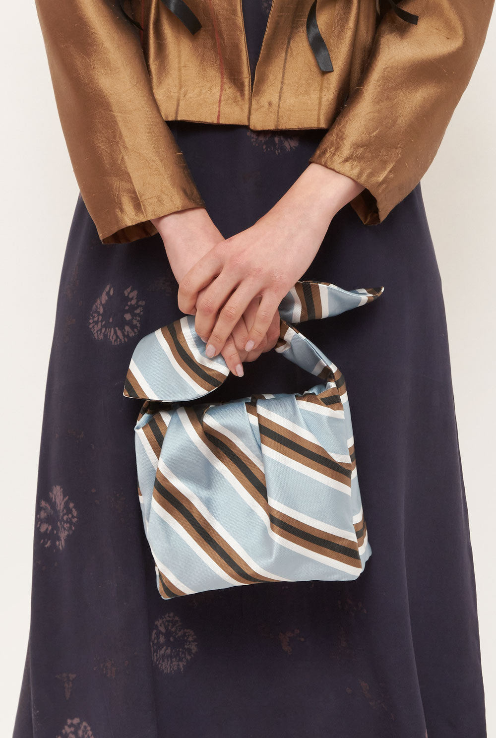 La silueta del bolso Mary tiene todos los ingredientes para convertirse en uno de tus nuevos imprescindibles. Este bolso está fabricado en España, elaborado a partir de lustrosos y lisos seda-satén. Es un bolso de mano suave con asa anudada y cierre de botón superior magnético.