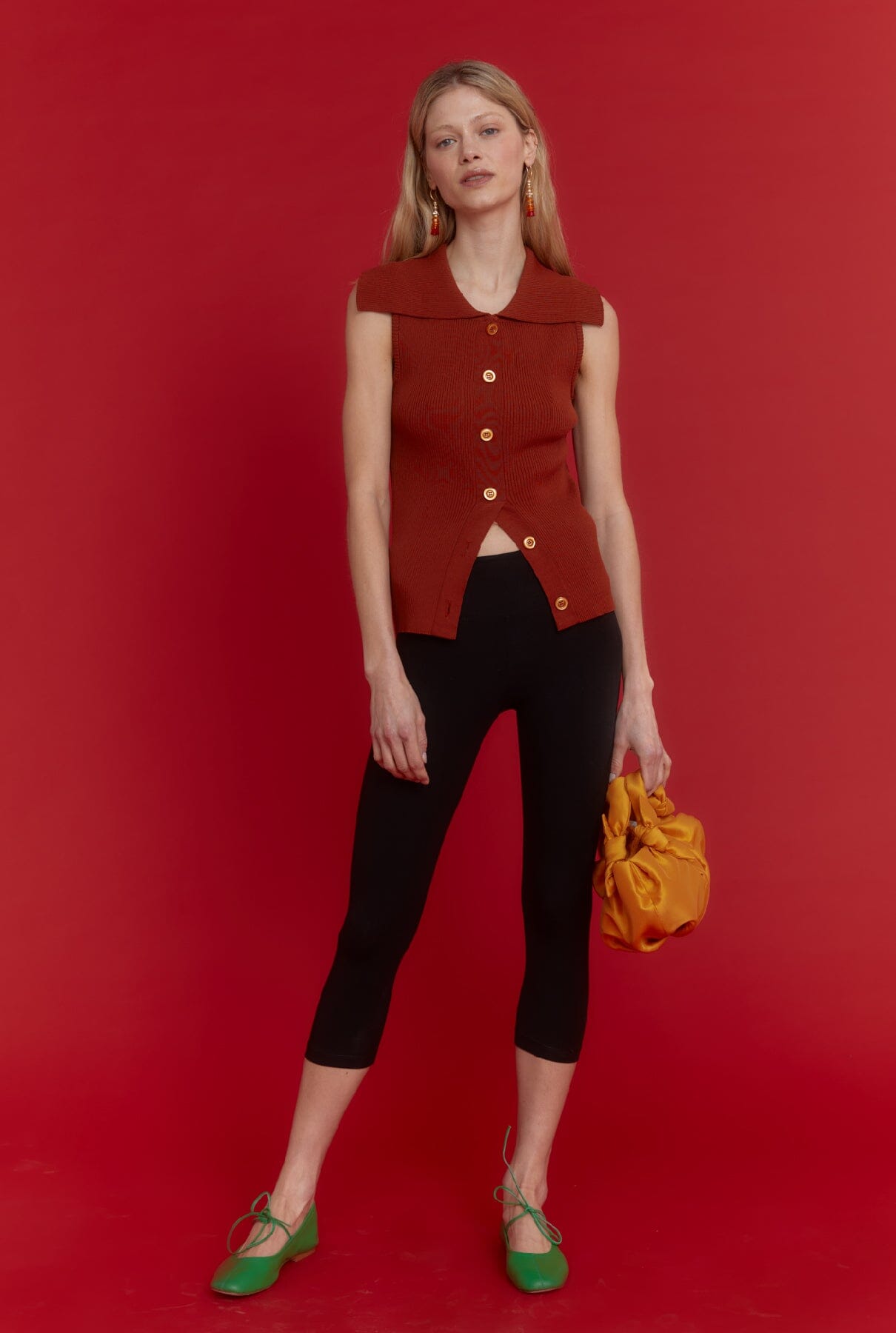 El polo Matti es una camiseta sin mangas y de canalé confeccionada con una mezcla de viscosa y nailon ligera y de alta calidad que resulta muy agradable al tacto. El sofisticado cuello extragrande y el cierre con botones añaden un toque femenino especial.