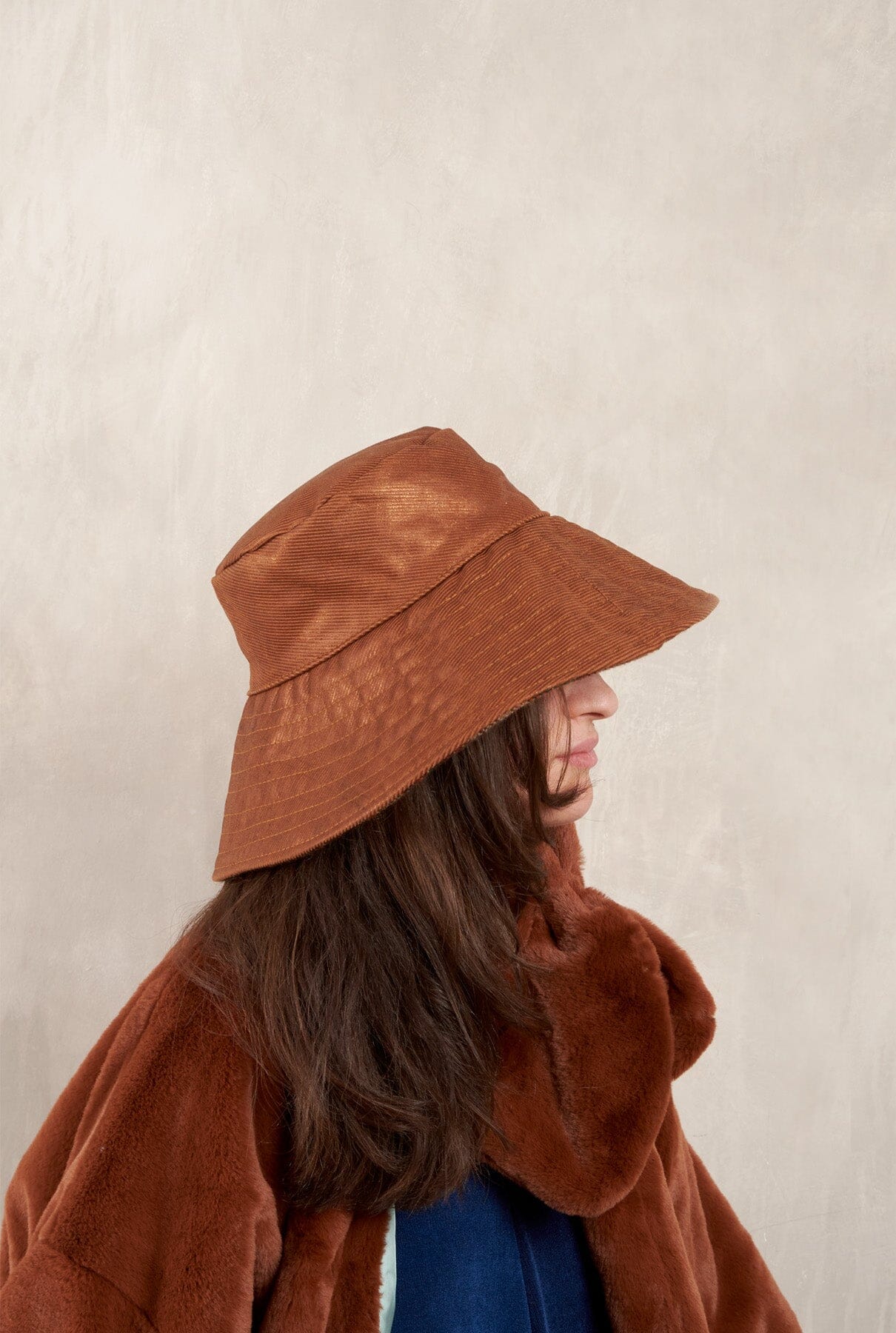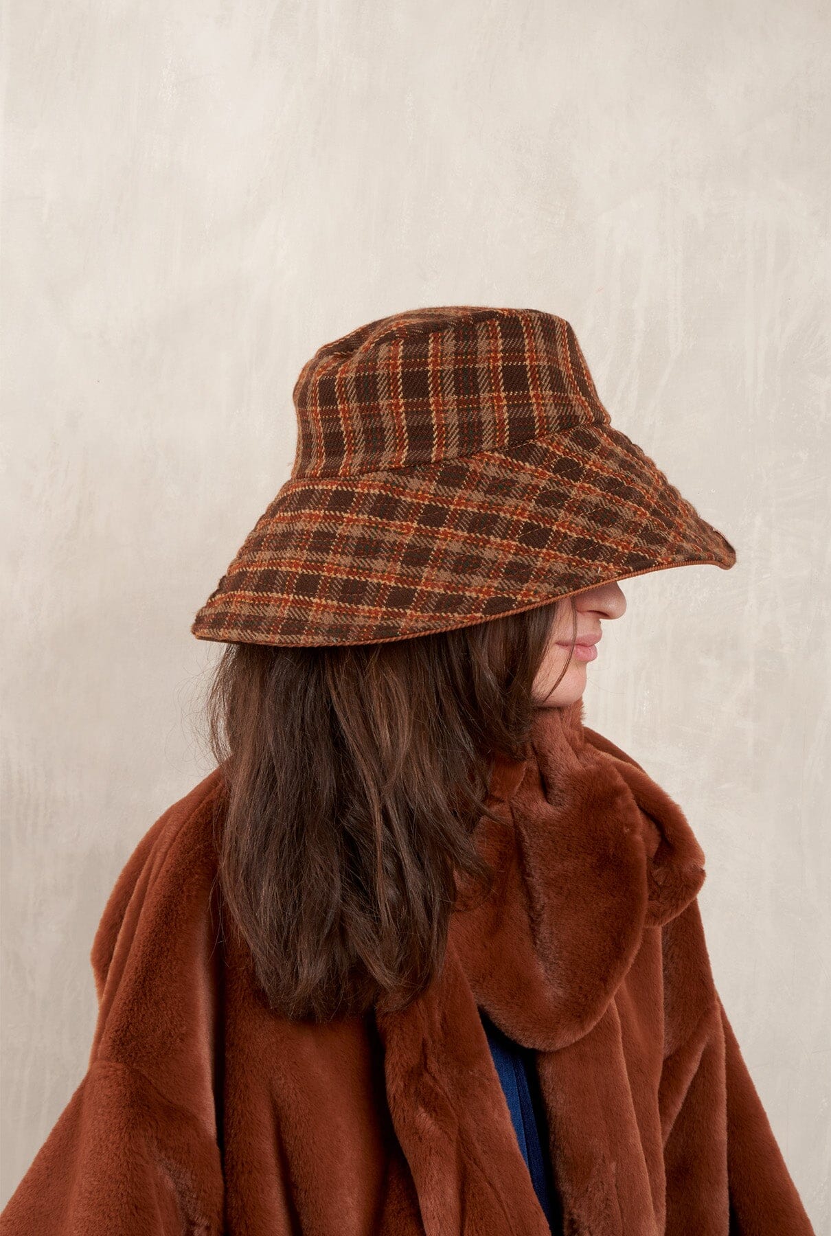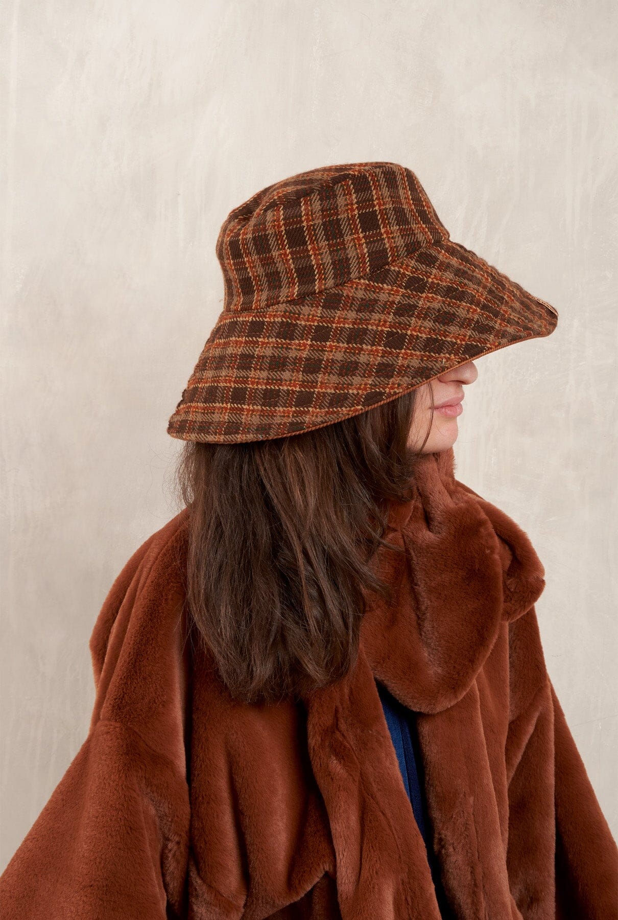 Gorro reversible. Un lado es pana marrón y el otro lado es estampado de cuadros. Perfecto para tus días de otoño-invierno.