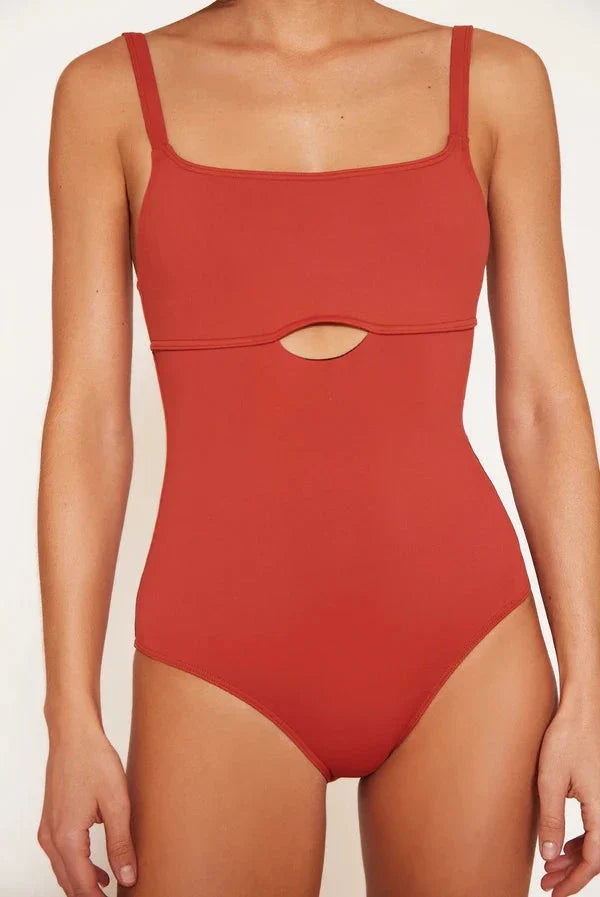 Maillot con pequeña apertura bajo el pecho.
