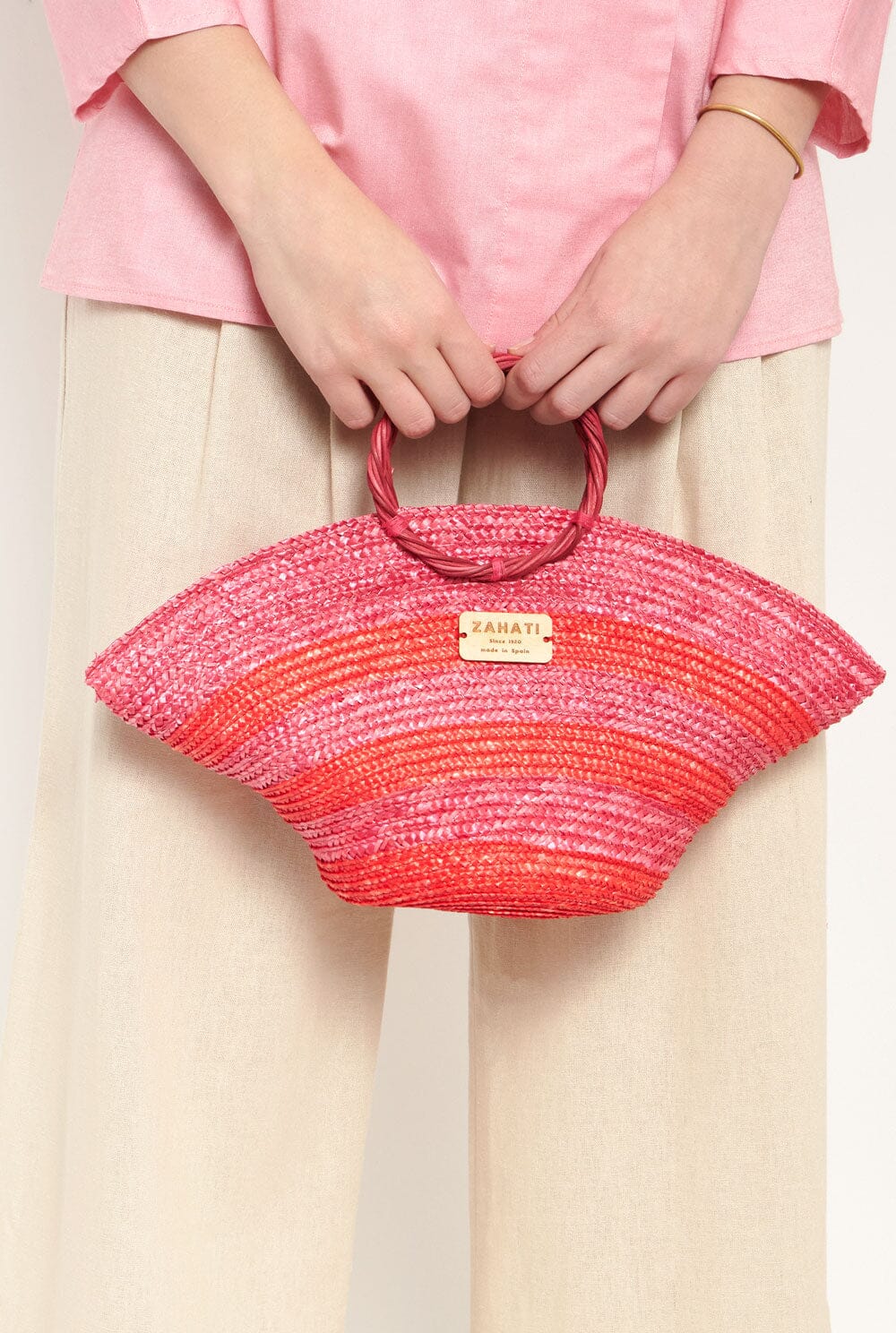 Mini hatbag en rosa y rojo. Un bolso muy lindo que se puede usar en cualquier lugar, eventos especiales y para uso diario. Diseñado por Zahati.