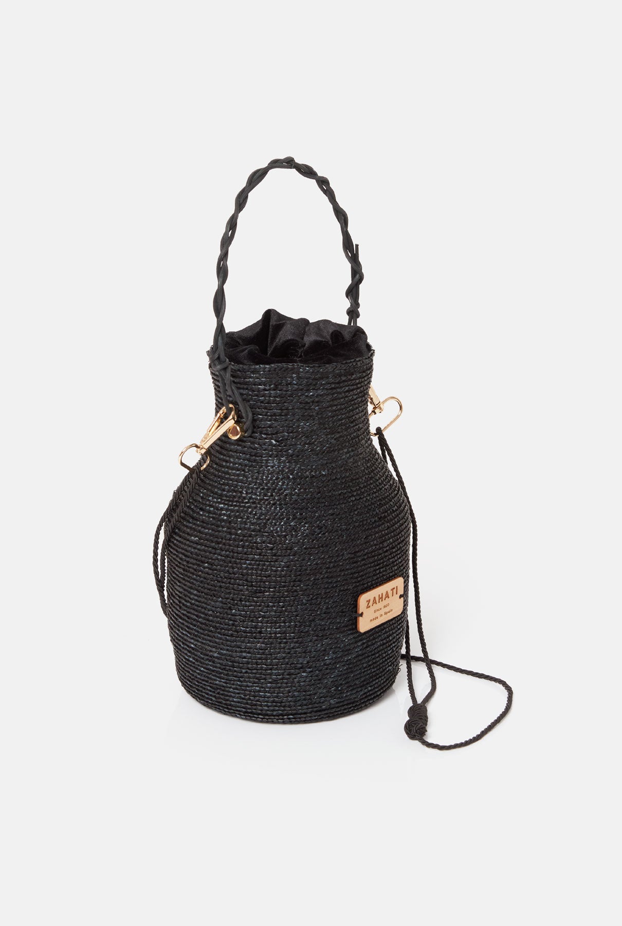 Este bolso es una pieza original hecha a mano con paja de trigo y tuétano. Tiene una percha adicional que puedes colgar en tu hombro. Diseñado por Zahati