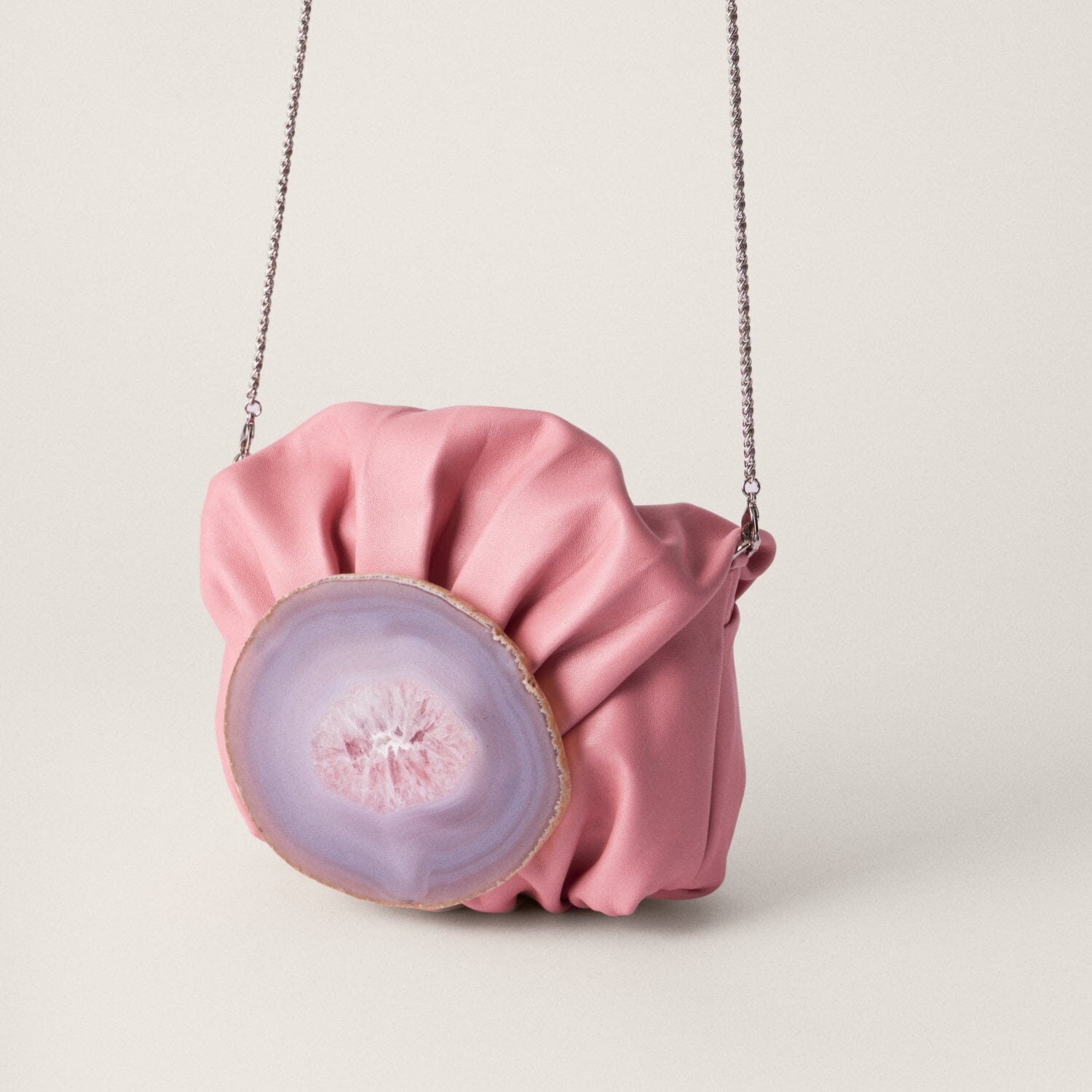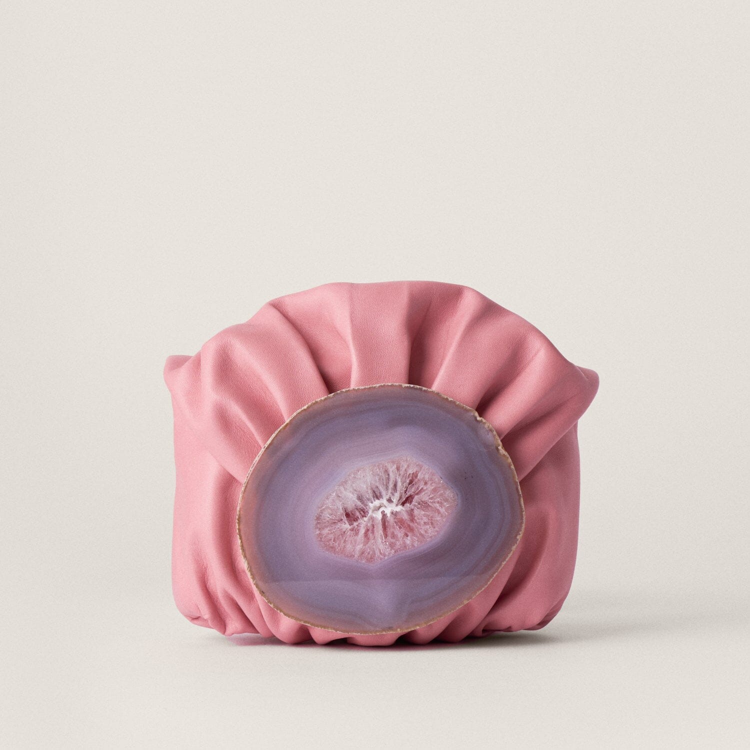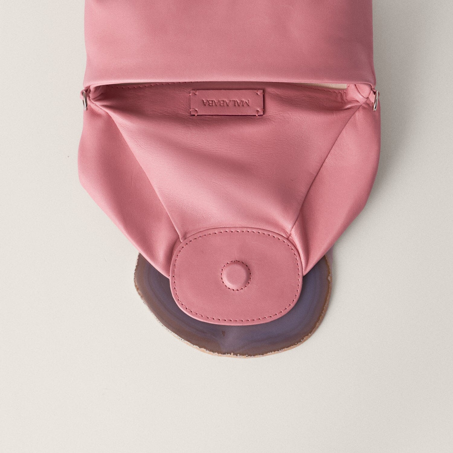 Clutch mediano con estructura fruncida, elaborado en napa de cordero española extremadamente suave y agradable. Su cierre incorpora una pieza de ágata natural, única y exclusiva para cada bolso, seleccionada por nuestro equipo de diseño, por lo que difiere de las que aparecen en las imágenes de nuestra web. Si lo desea, podemos proporcionarle una foto previa antes de comprar online.